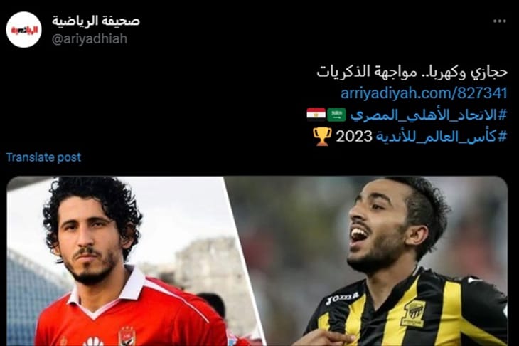 كما نشرت"الرياضية" تقريرا آخر بعنوان "حجازي وكهربا.. مواجهة الذكريات"، تناولت فيه مواجهة محمود عبد المنعم "كهربا" لاعب الأهلي مع فريقه السابق، وهو نفس الأمر بالنسبة لأحمد حجازي مدافع الاتحاد.فيما تناولت صحيفة "عكاظ" المواجهات العربية في مونديال الأندية، التي كان الأهلي طرفا في 3 سابقة منها.