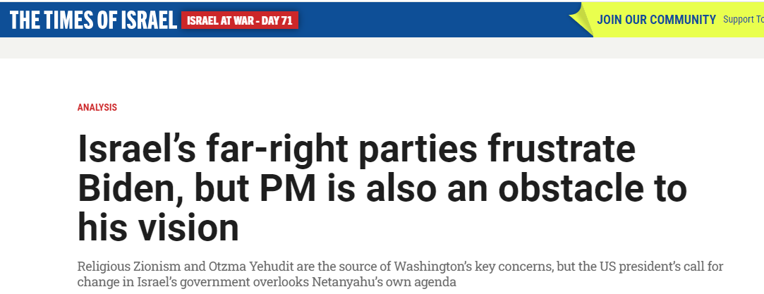 واعتبر خبراء عسكريون اسرائيليون أن الانتخابات الرئاسية الأمريكية المقبلة 2024، تعد أحد الأسباب وراء تصريحات بايدن الذي أدرك أنه فقد الكثير من شعبيته ، مؤكدين أن "الحزب الديمقراطي بأكمله، وليس بايدن وحده، بات يشعر بقلق تجاه فرص مرشحيه ممن سيخوضون الانتخابات المقبلة لمجلسي النواب والشيوخ"..