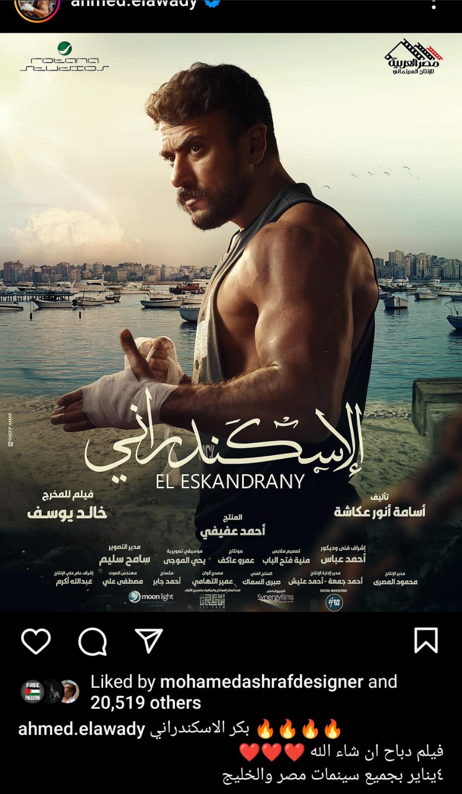 جدير بالذكر، أعلن المطرب والملحن عصام كاريكا، عن تقديمه الأغاني الرسمية لفيلم، " الإسكندراني" بطولة النجم أحمد العوضي، وإخراج خالد يوسف.