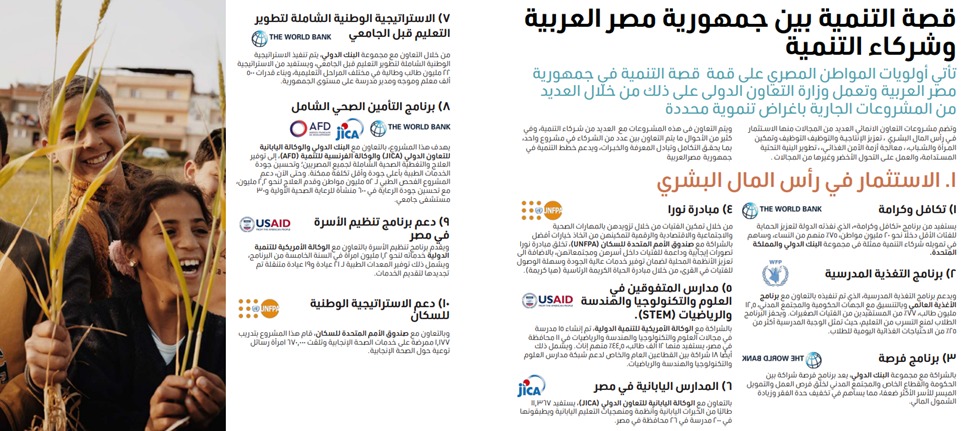 وأتاح شركاء التنمية تمويلات تنموية ومنح بقيمة 1.11 مليار دولار، في مجال تمكين المرأة والحماية الاجتماعية، خلال الفترة من 2020 إلى 2023، من الاتحاد الأوروبي، وبنك الاستثمار الأوروبي، وألمانيا، والوكالة الفرنسية للتنمية، والصندوق العربي للإنماء، والصندوق الكويتي للتنمية، والبنك الدولي، وسويسرا.