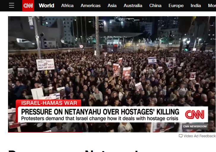 عرضت قناة "CNN" الأمريكية، تقريرا تلفزيونيا بعنوان "ضغط كبير على نتنياهو بعد قتل الأسري ".
