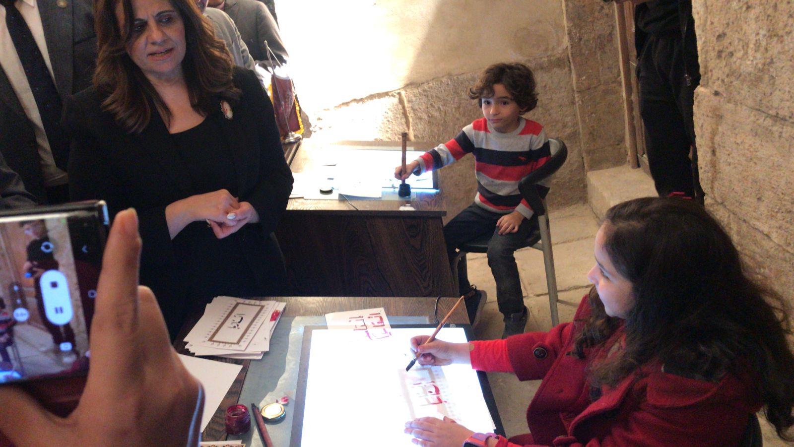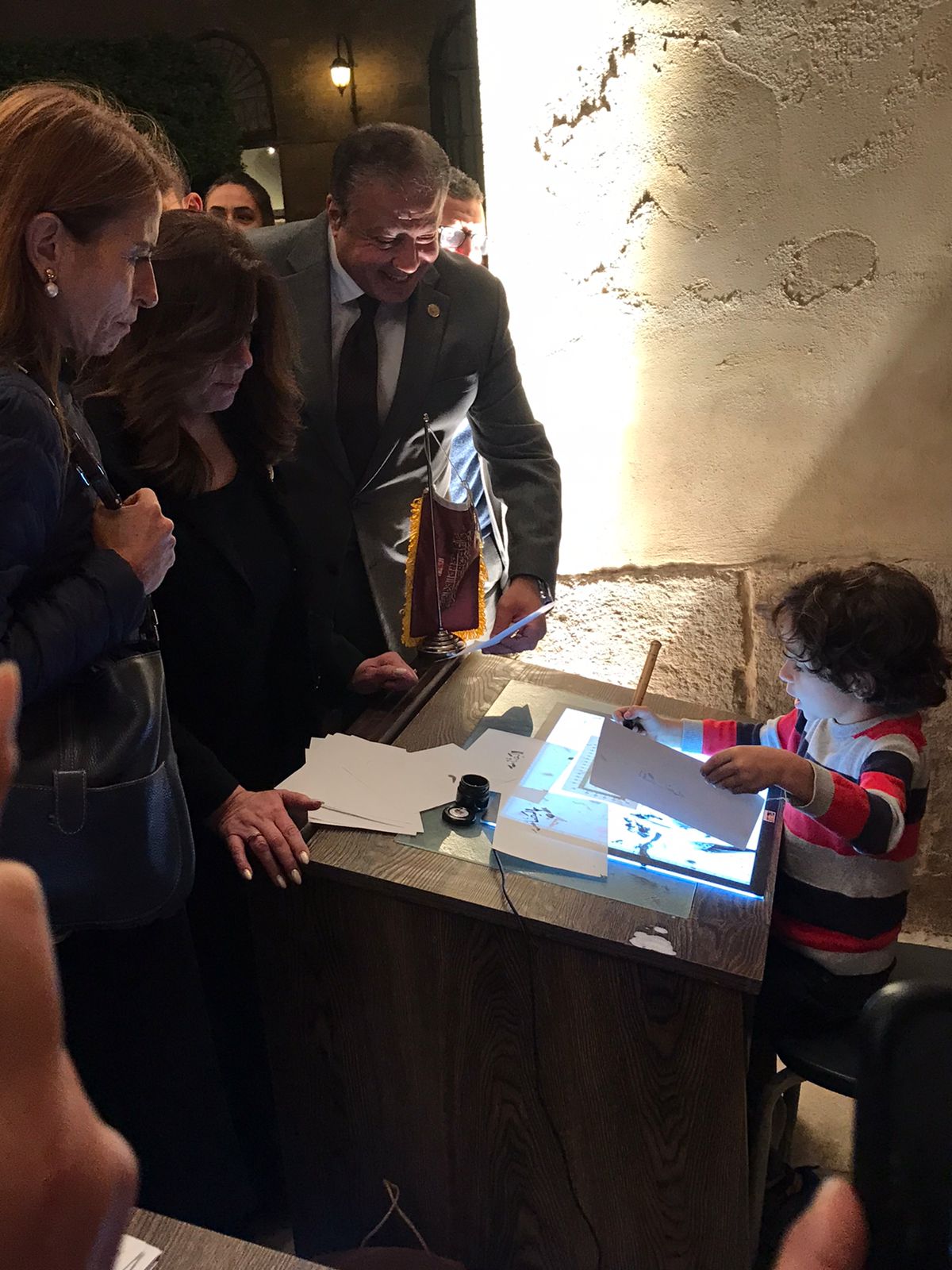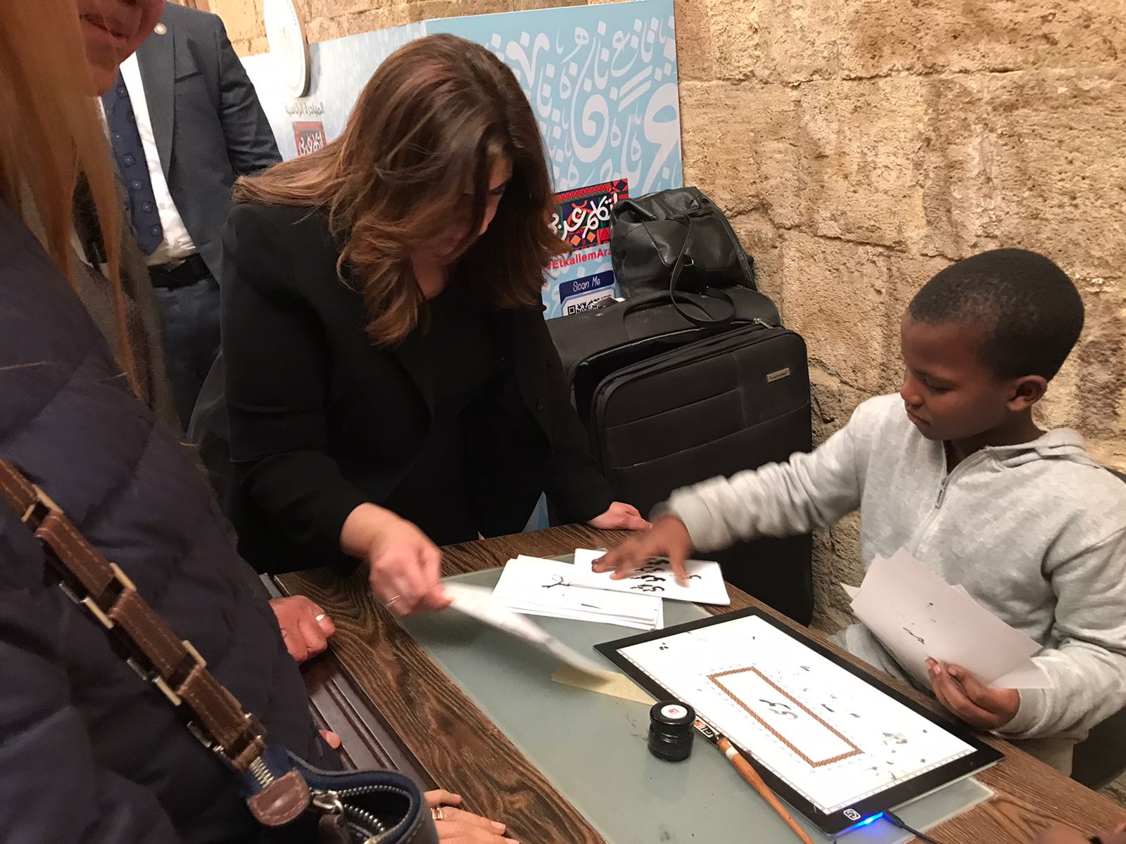 وخلال جولة لوزيرة الهجرة، بمعرض الخط العربي، أهدى أحد الأطفال المشاركون في المعرض "موسى"، لوحة نقش عليها اسم الوزيرة "سها جندي"، وهو ما أعربت عن سعادتها بها وبالأطفال المشاركون في هذا المعرض.