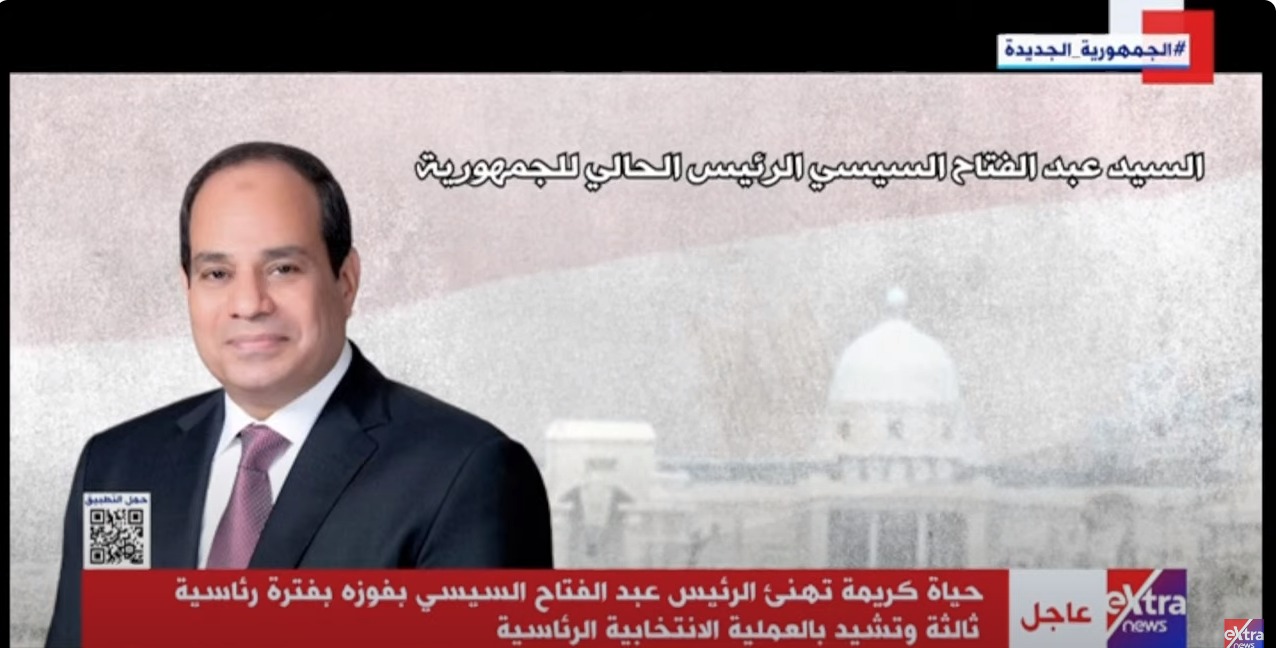 واعلنت الهيئة الوطنية للانتخابات فوز الرئيس السيسي بالرئاسة المصرية للمرة الثالثة علي التوالي