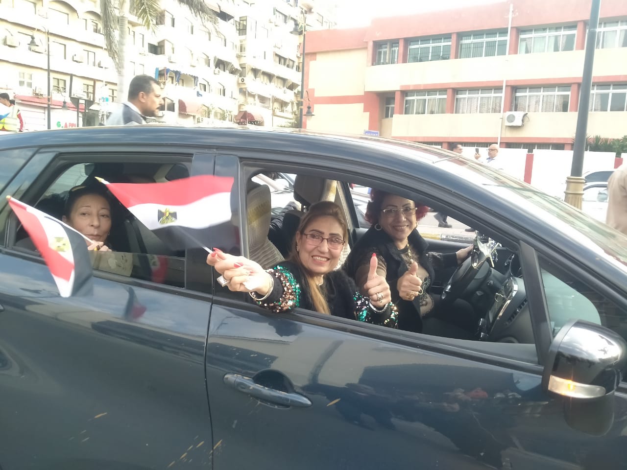 وبرز مشهد رفع علم لمصر تجاوز طولة الـ 40 مترًا، وركب عددا من الشباب الخيول للاحتفال بطريقتهم الخاصة، رافعين أعلام مصر وصور الرئيس، وتواجد كافة الفئات من شباب وسيدات وكبار وصغار، في مسيرة بدأت من مسجد السلام بشارع طرح البحر ووصلت إلي الاستاد، بمسافة تتجاوز الكيلو متر.