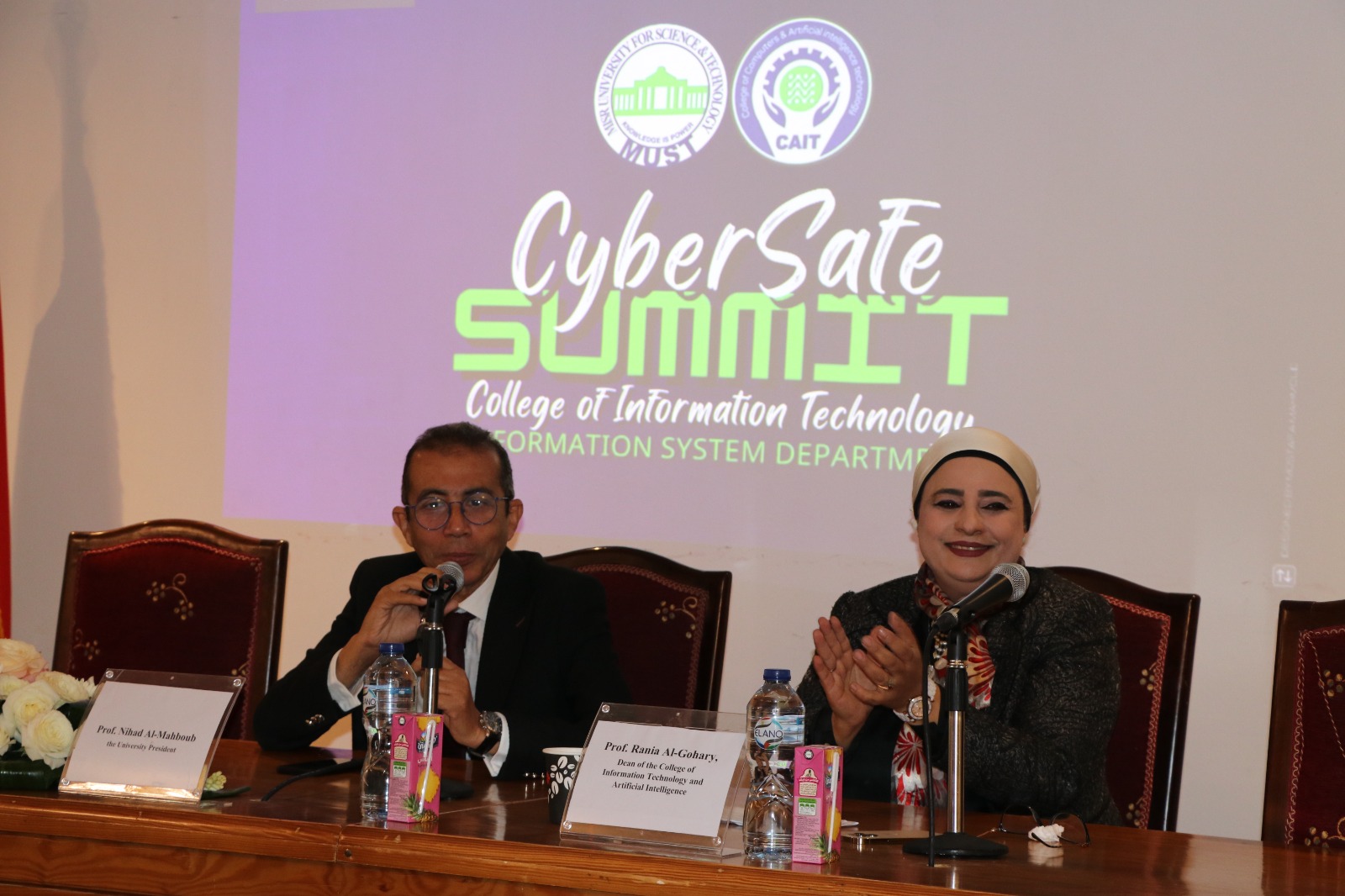 فى إطار رفع مستوى الوعى حول أهمية الأمن السيبرانى والمخاطر المرتبطة بالهجمات السيبرانية، نظمت كلية "تكنولوجيا المعلومات" جامعة مصر للعلوم والتكنولوجيا، مؤتمر "الأمن السيبرانى"، بقاعة المؤتمرات بالجامعة، حيث يأتى المؤتمر برعاية خالد الطوخى رئيس مجلس أمناء جامعة مصر للعلوم والتكنولوجيا، وإشراف د. نهاد المحبوب القائم بأعمال رئيس جامعة مصر للعلوم والتكنولوجيا، ود. مختار الظواهرى نائب رئيس الجامعة للتوثيق والمتابعة، ود. رانيا الجوهري عميد كلية تكنولوجيا المعلومات والذكاء الاصطناعي، ود. خالد عبد السلام على القائم بأعمال رئيس قسم نظم المعلومات بالكلية.