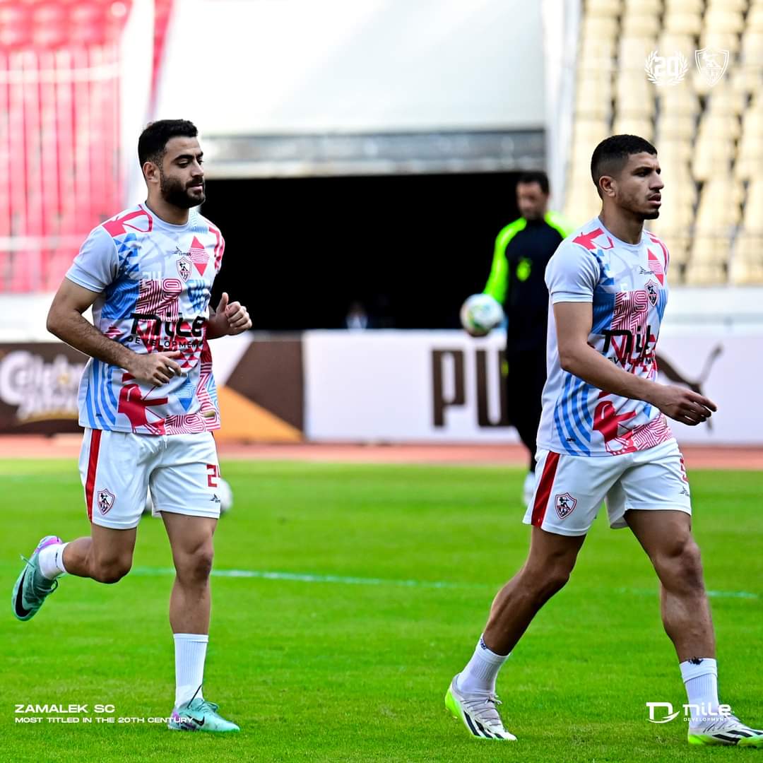 عمليات إحماء لاعبي الزمالك استعداداً لمواجهة ساجرادا في الكونفدرالية الإفريقية