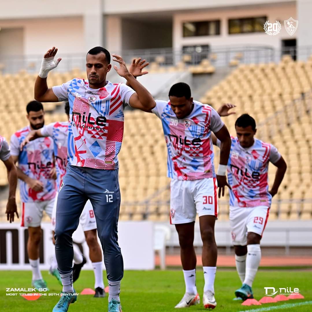 عمليات احماء لاعبي الزمالك استعداداً لمواجهة ساجرادا في الكونفدرالية الإفريقية