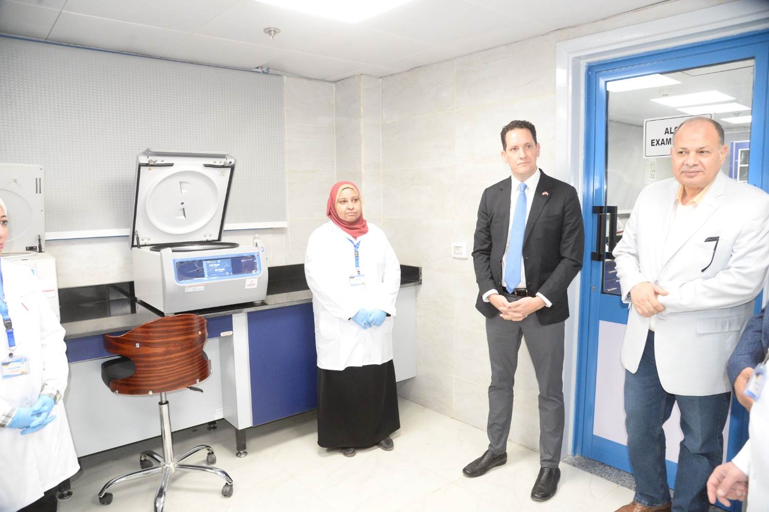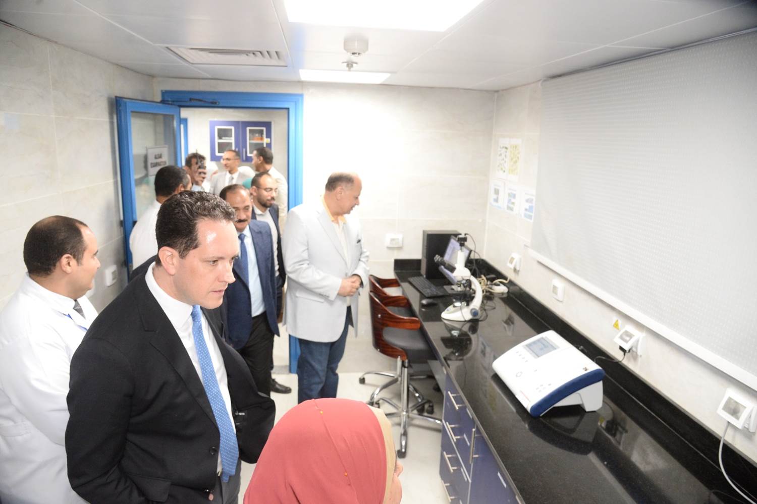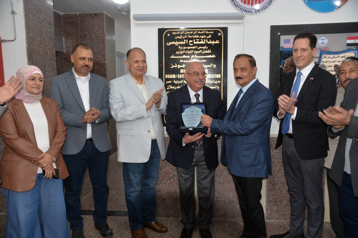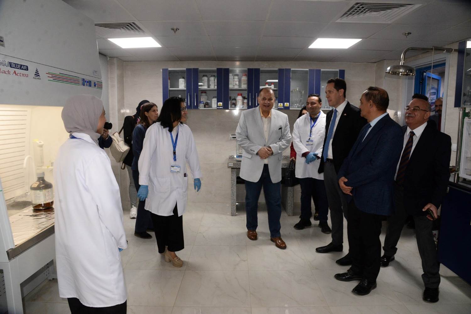 والتقى المحافظ ومدير الوكالة الامريكية العاملين بأقسام المعمل المركزى واستمع منهم إلى شرح لطبيعة العمل وأهمية كل قسم ودوره في تقديم الخدمات بإستخدام أحدث الأجهزة تنفيذًا لتوجيهات القيادة السياسية بتقديم خدمات أفضل للمواطنين خاصة في قطاع مياه الشرب والصرف الصحي في إطار إستراتيجية تنمية محافظات الصعيد وتحقيق التنمية المستدامة بها.