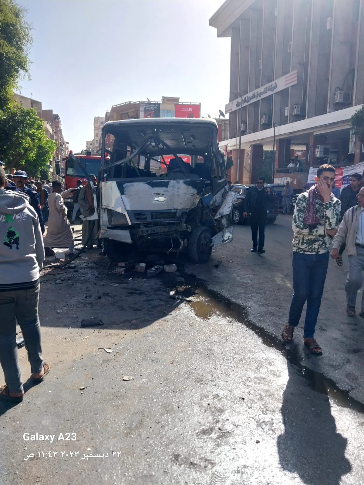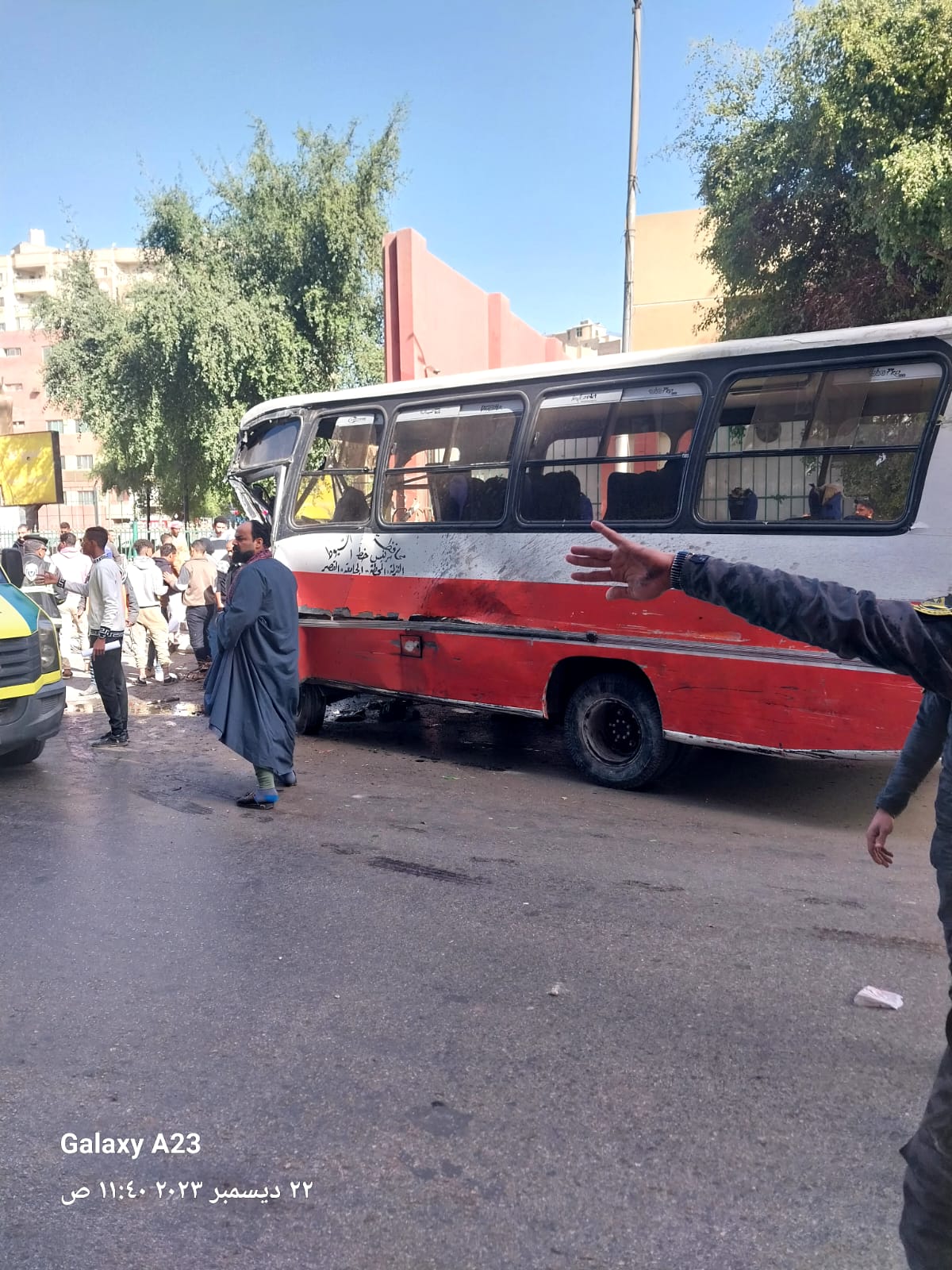 إنتقل إلى موقع الحادث ضباط القسم والاسعاف وتبين من المعاينة والفحص اصطدام أتوبيس رقم 6237 ي س ج بعامود إنارة.