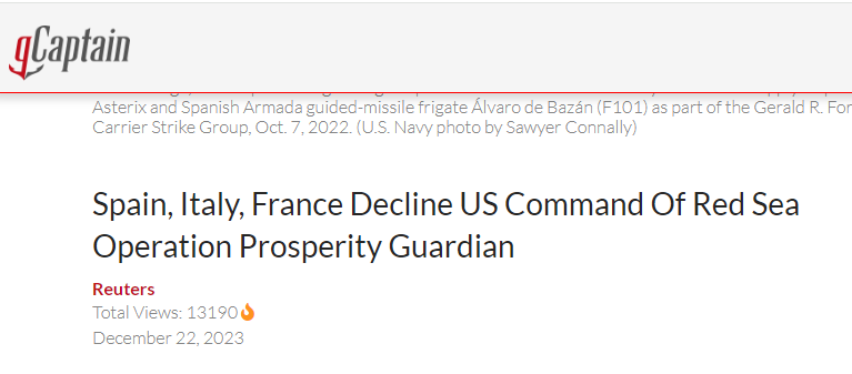 فرنسا وإسبانيا وإيطاليا يعلنا انسحابهم من هيكل القيادة الأمريكي لعملية "حارس الرخاء"