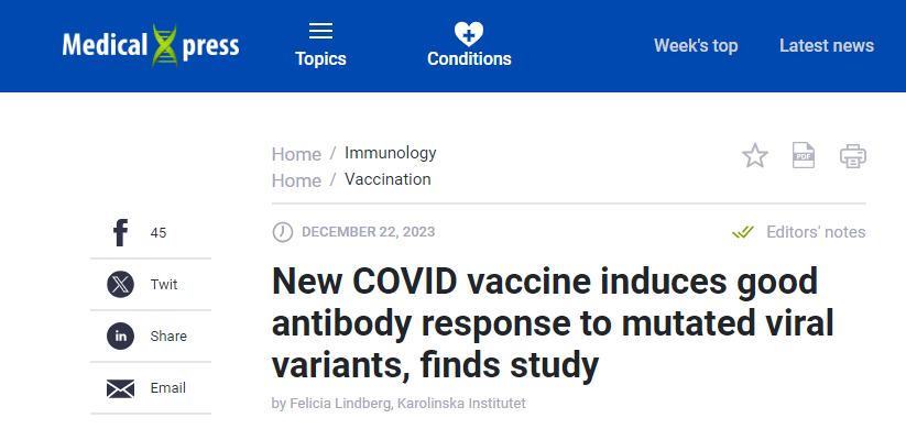 موقع medicalxpress.com الأمريكي يكشف أعراض JN.1 ومدى خطورته وجدوى لقاحات كوفيد-19 فى الحد من انشاره
