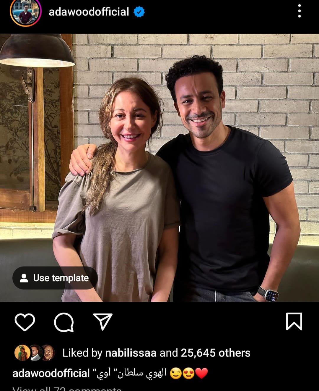 وشوق"داوود" جمهوره بصورة له مع منة شلبي من كواليس تصوير الفيلم، وذلك عبر حسابه الخاص بموقع تبادل الصور والفيديوهات"انستجرام"، وكتب: "الهوى سلطان أوي".
