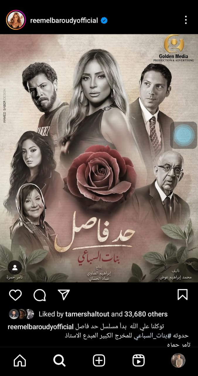 أعلنت الفنانة ريم البارودي عن بدء تصوير مسلسلها الجديد"حد فاصل"، والذي من المقرر عرضه خلال العام الجديد2024.