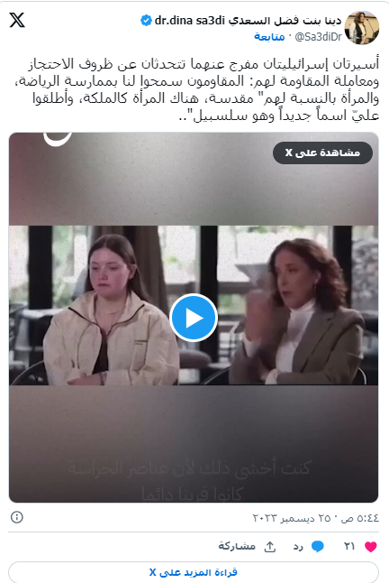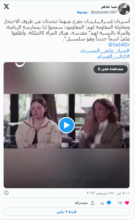 تفاعل رواد مواقع التواصل مع فيديو "سلسبيل الإسرائيلية" أسيرة حماس المفرج عنها