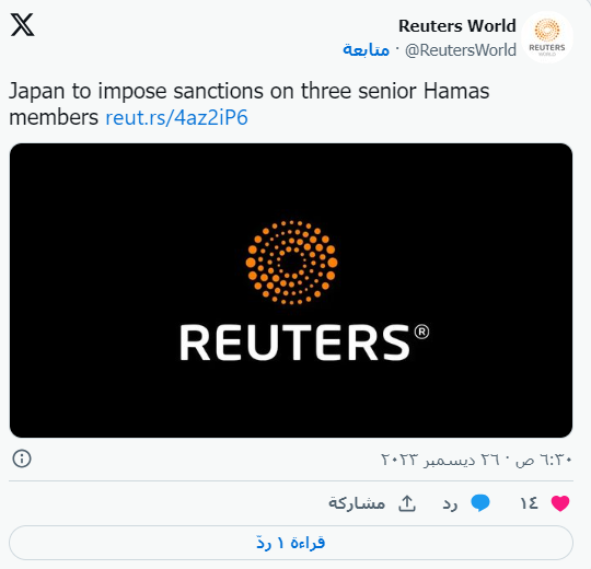 رويترز: اليابان تفرض عقوبات مالية على 3 من قادة حماس