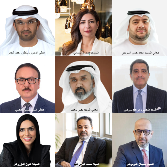 وتضم القائمة كل من معالي الدكتور سلطان الجابر، وزير الصناعة والتكنولوجيا المتقدمة في دولة الإمارات العربية المتحدة، ومعالي السيد محمد حسن السويدي، وزير الاستثمار الإماراتي، ومعالي المهندس ياسر القاضي، وزير الاتصالات وتكنولوجيا المعلومات المصري السابق، وصاحب المعالي سيد بصر شعيب، والدكتور إبراهيم سرحان، والسيدة هناء الرستماني، الرئيس التنفيذي لمجموعة بنك أبوظبي الأول.