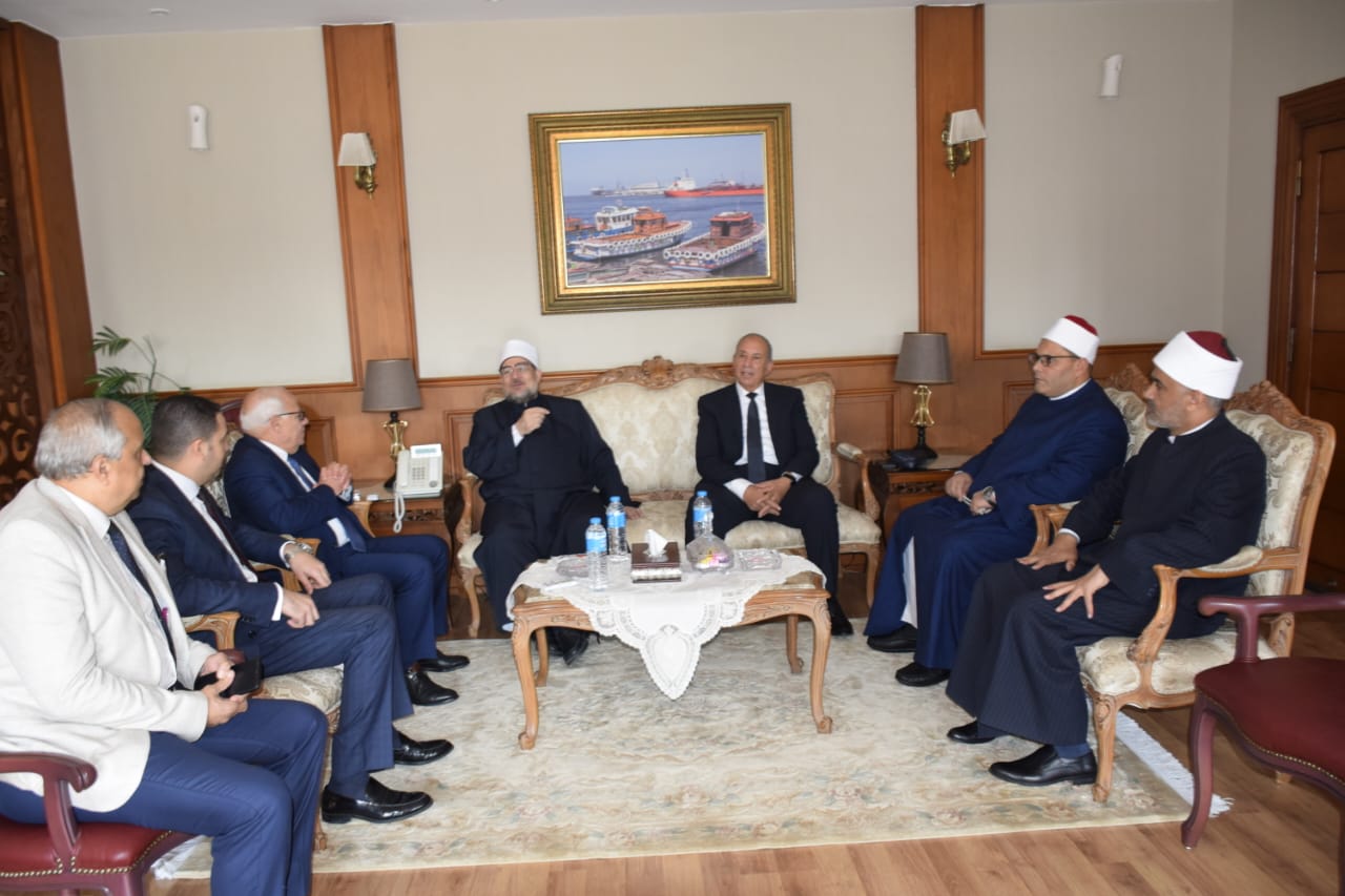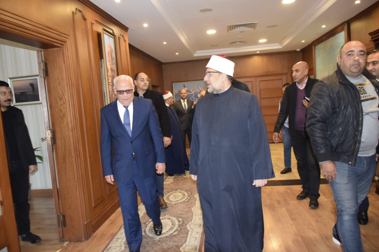 محافظ بورسعيد يستقبل وزير الأوقاف ومفتي الجمهورية للمشاركة فى احتفالات العيد القومي