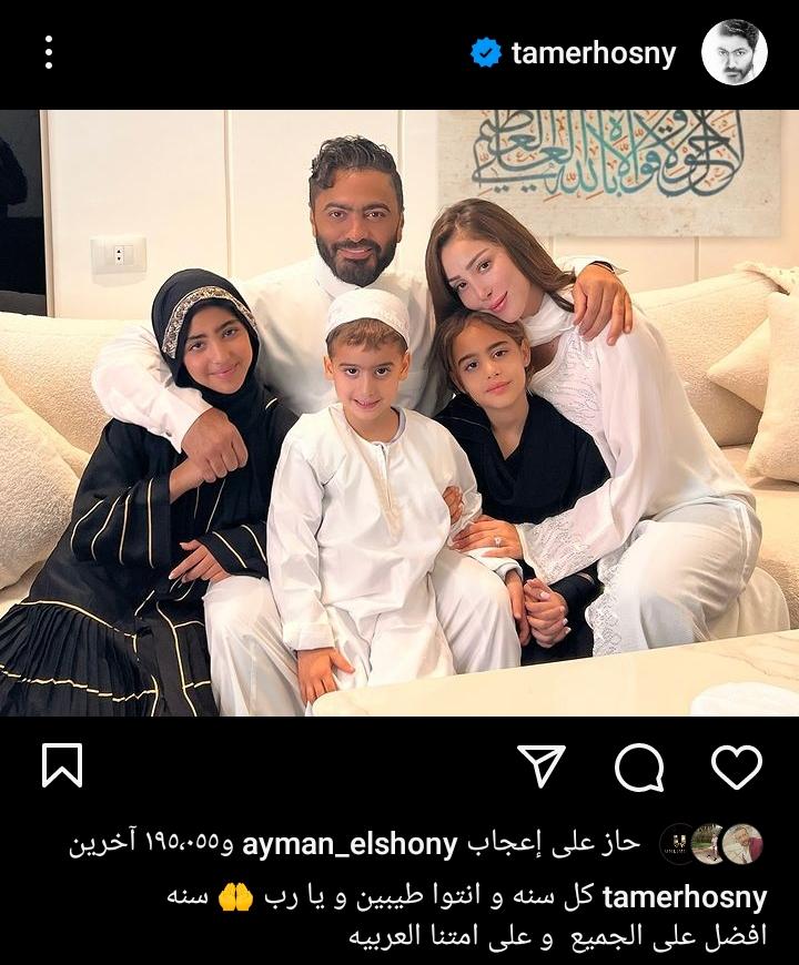 أثار النجم تامر حسني حيرة جمهوره، بعد نشره صورة تجمعه بأسرته ظهرت فيها زوجته السابقة، الفنانة بسمة بوسيل.