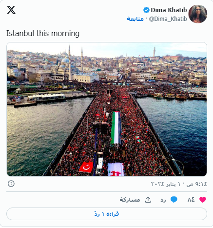 وتجمع آلاف المواطنين أمام ساحة جامع آيا صوفيا الكبير بعد إقامة صلاة الصبح في مساجد: السلطان أحمد، السليمانية، أمين أونو الجديد، بعد تلاوة الابتهالات من أجل ضحايا الجيش التركي والشعب الفلسطيني.