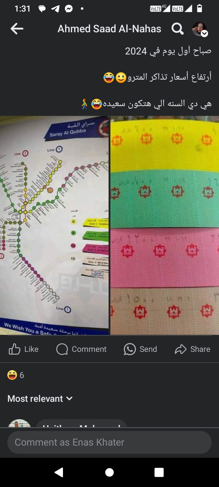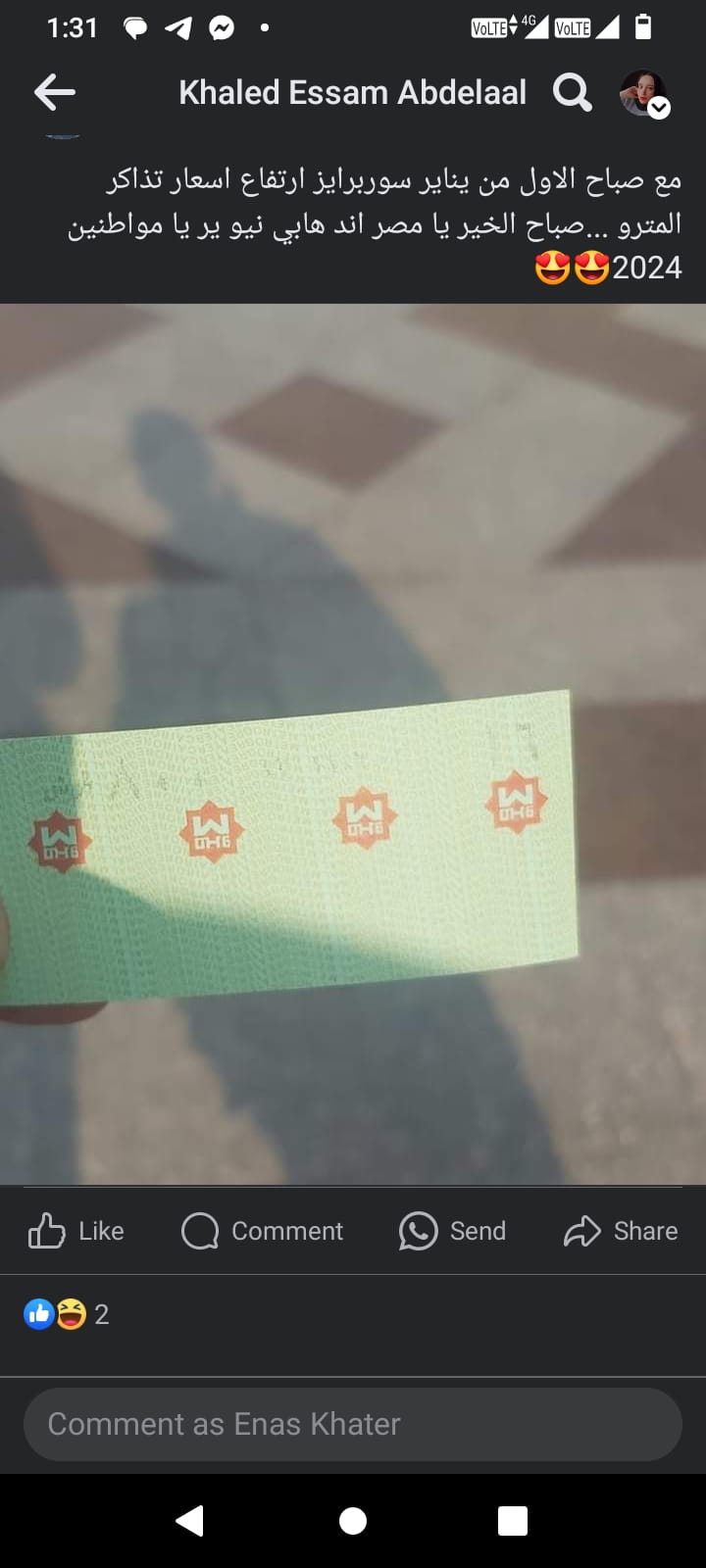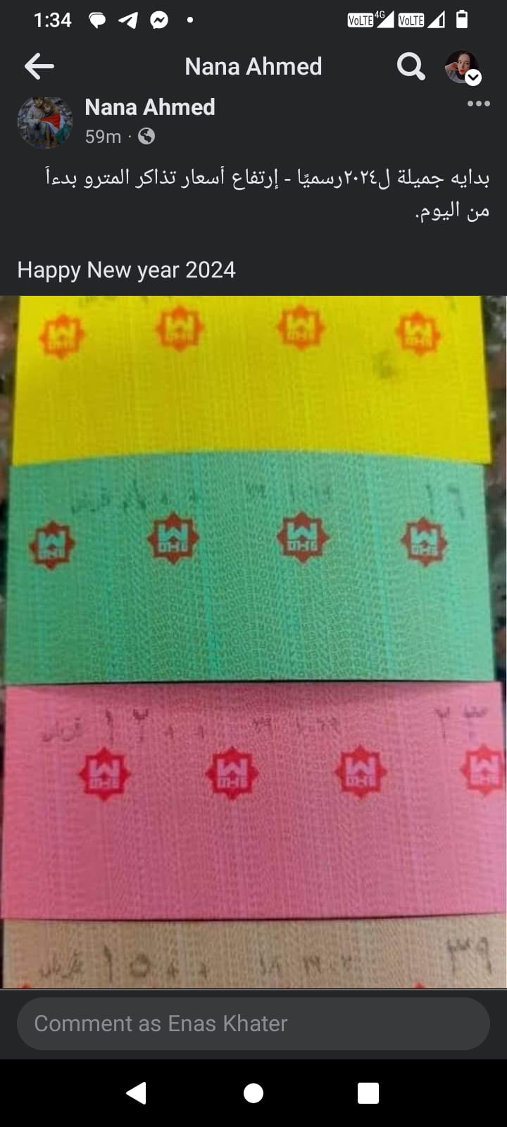اسعار تذاكر المترو..وحملت جميع التعليقات موجة من السخرية الضاحكة التي انهالت علي رواد التواصل الإجتماعي علي موقع “ الفيس بوك” في حالة من السخرية علي بداية العام الجديد 2024 .