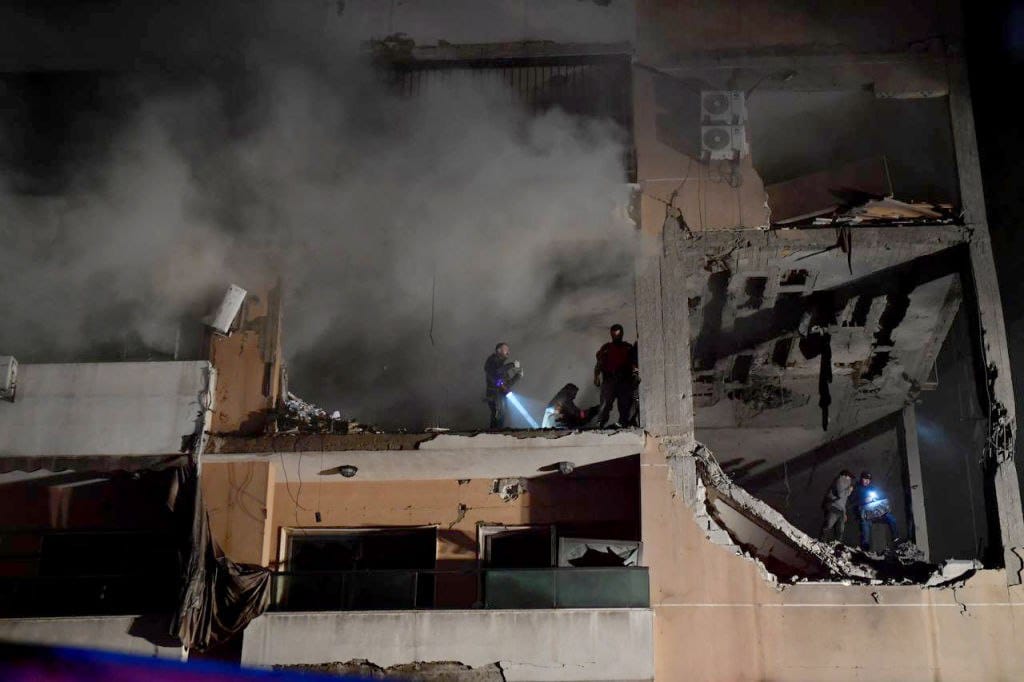 أوضحت صور التقطت من موقع الحادث الذي تعرضت له ضاحية لبنان الجنوبية عن تهدم الطوابق الثلاثة في الواجهه الامامية لعمارة سكنية ، فضلا عن استمرار تصاعد الدخان من الطابق الثاني في وجود الحماية المدنية .