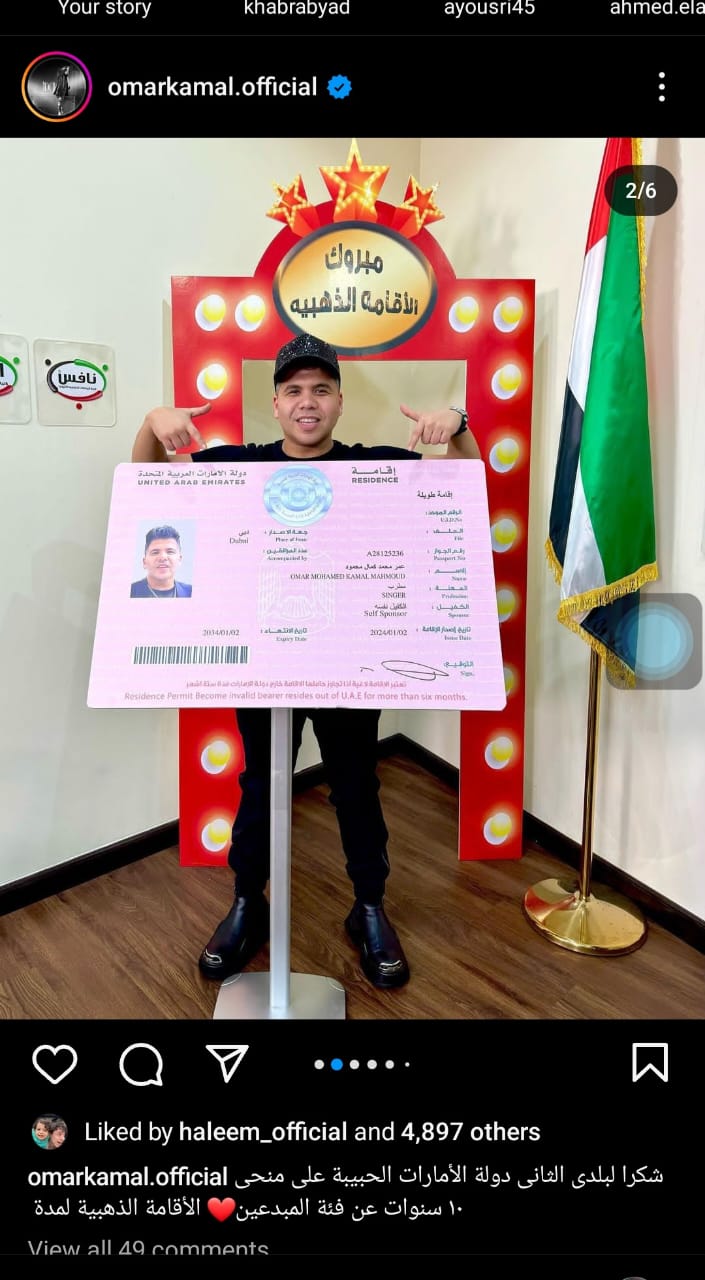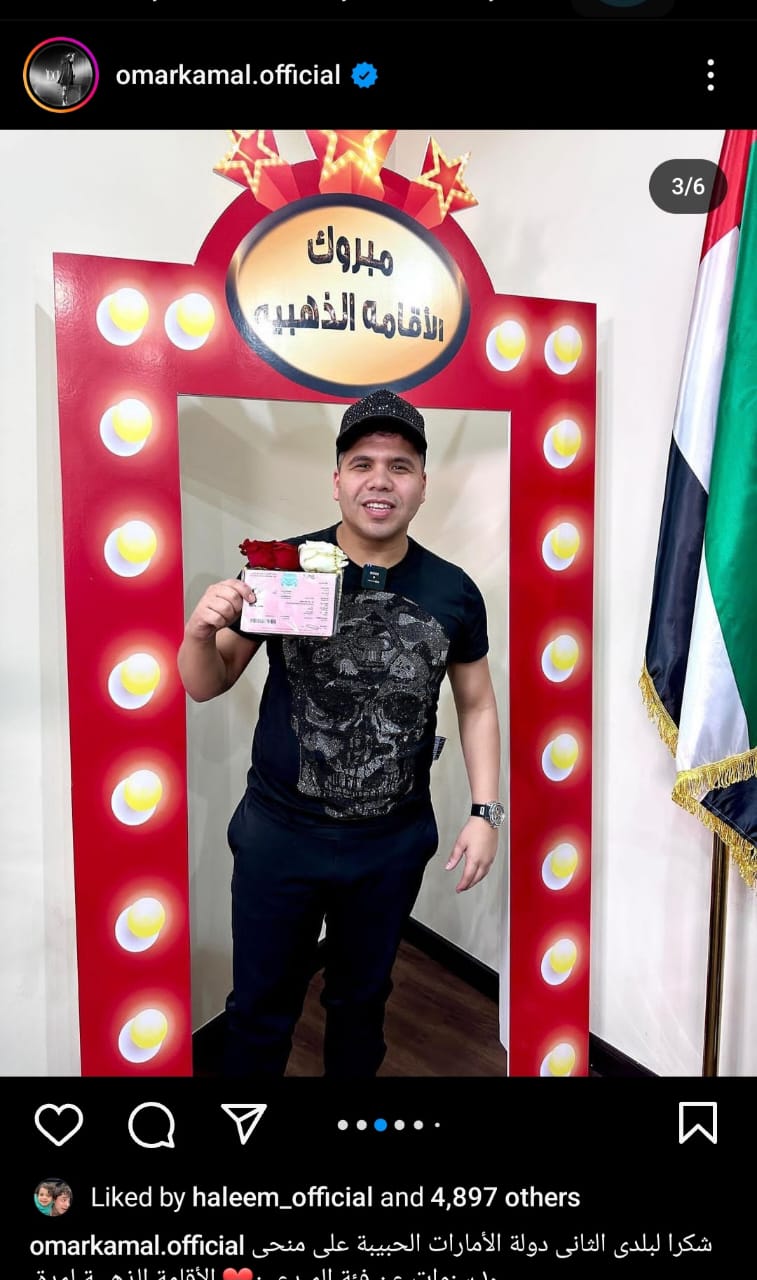 إحتفل مطرب المهرجانات الشعبية عمر كمال بحصوله على الإقامة الذهبية من دولة الإمارات العربية المتحدة.