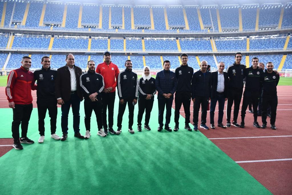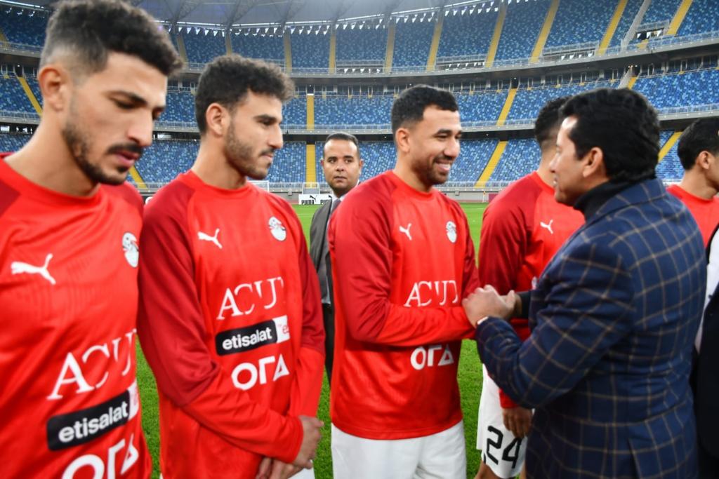 وزير الرياضة يصطحب أبطال مصر والعالم لحضور تدريب المنتخب المصري لكرة القدم (صور)