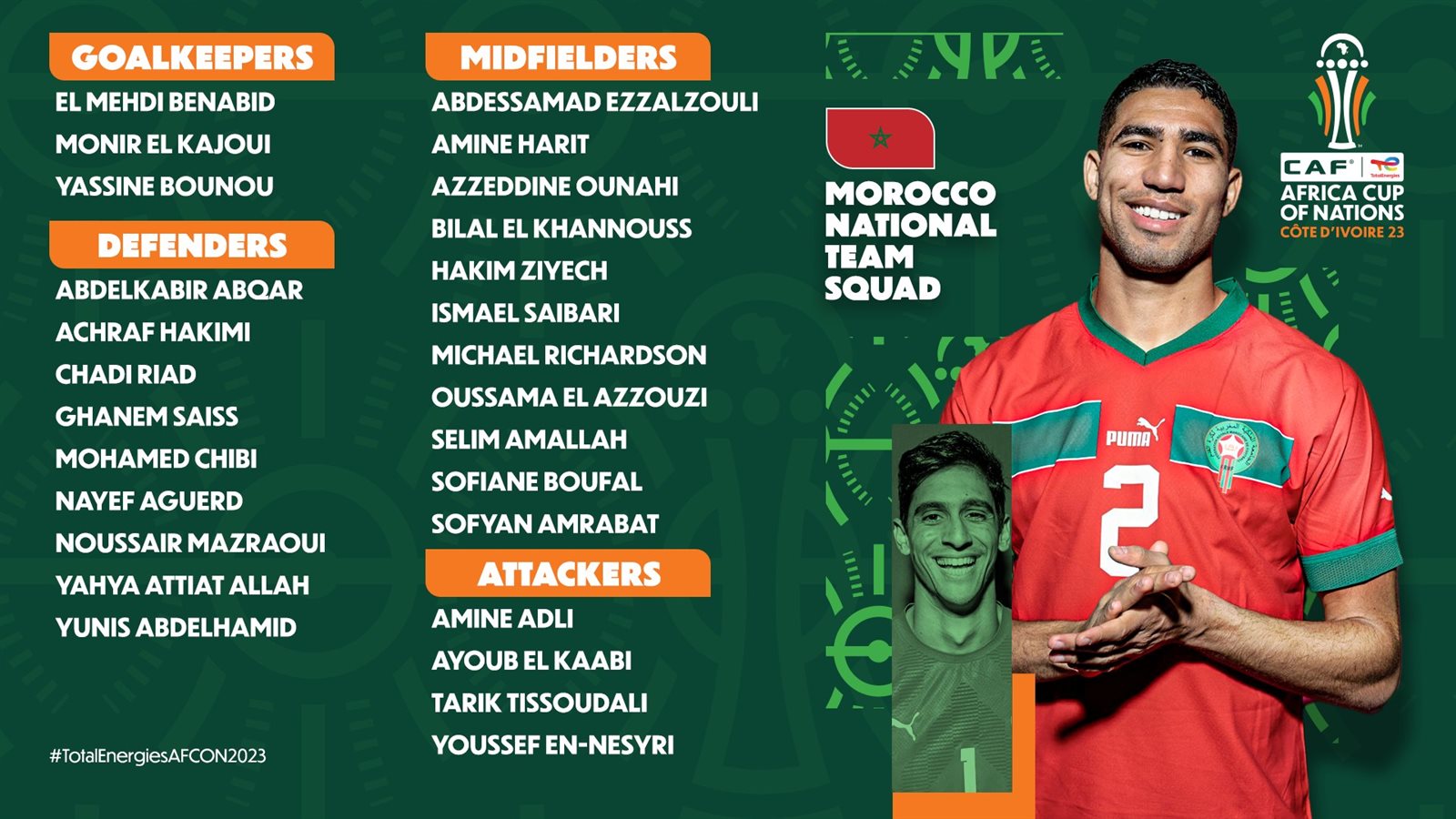 أعلن الاتحاد الإفريقي عن القوائم النهائية للمنتخبات الإفريقية المشاركة في بطولة كأس الأمم الإفريقية 2024 والتي تستضيفها كوت ديفوار في الفترة من 13 يناير الجاري حتى 11 من فبراير، ونشرت صفحة الاتحاد الإفريقي عبر صفحتها على الفيس بوك قوائم الفرق المشاركة.