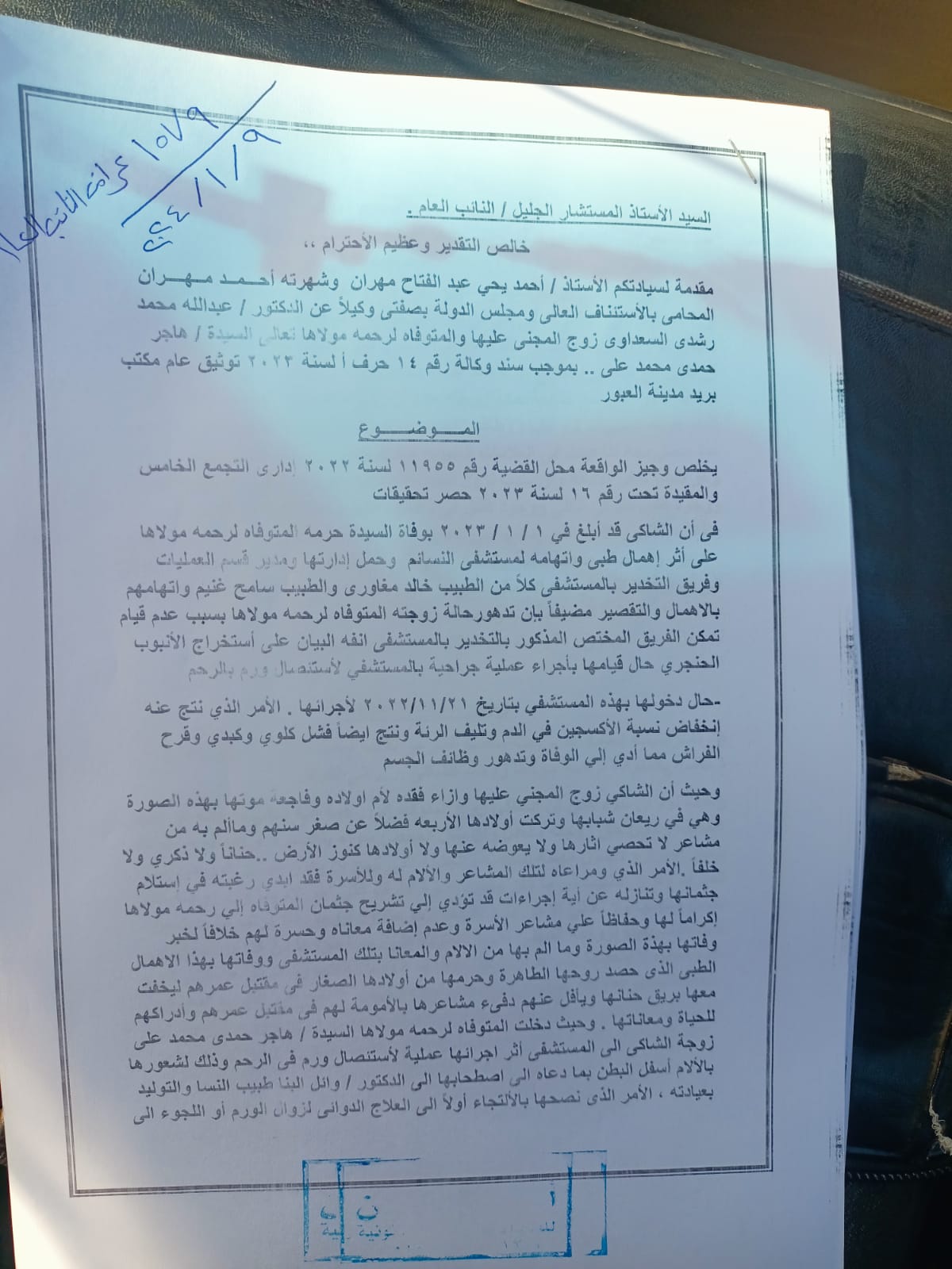 عبدالله رشدي يقدم بلاغا للنائب العام ضد مسئول مستشفى النسائم وطبيب التخدير