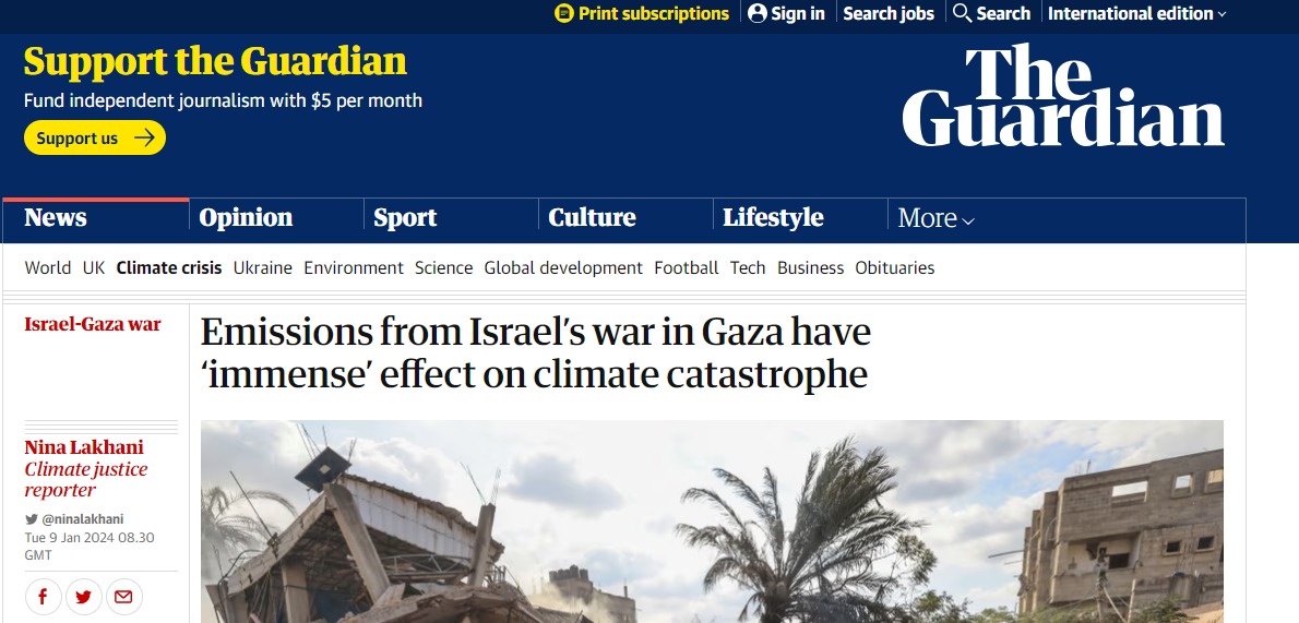 الجارديان: حرب إسرائيل في غزة لها تأثير هائل على المناخ