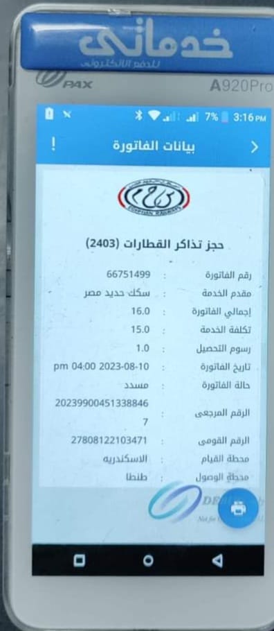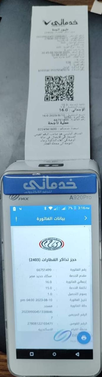 حيث تم إضافة وكلاء البيع ( خدماتى – طلقة – كاش كول – أو باى ) التابعين لشركة خال إحدى شركات مجموعة إي فاينانس للاستثمارات المالية والرقمية والتى تعد من الشركات الرائدة فى مجال الدفع الالكتروني وتضم أكثر من 20 وكيل بيع بعدد 500 ألف نقطة بيع منتشرين على مستوى الجمهورية ويتم اضافتهم لمنظومة الدفع الفورى الخاصة بحجز تذاكر السفر بالقطارات تباعاً ، وجدير بالذكر أنه قد سبق للهيئة التعاقد مع شركة فورى والتى تمتلك عدد 320 ألف نقطة بيع على مستوى الجمهورية لبيع تذاكر السفر بالقطارات ليصبح بذلك إجمالى عدد نقاط البيع 820 ألف نقطة بيع على مستوى الجمهورية .