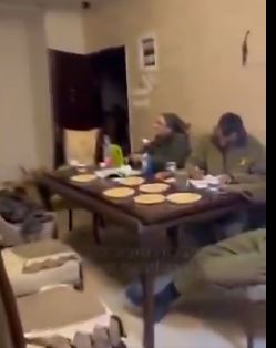 وأشارت مواقع إسرائيلية إلى أن المنزل يعود لإحدى قيادات حركة حماس، من دون تأكيد للأمر، وظهر جنود أمام الموقد يحضرون (عجينة الكريب والبان كيك) وهي مأكولات غربية، فيما يصورهم آخر من ورائهم، ويتحدثون العبرية، ومن خارج المطبخ ظهر آخرون عند طاولة الطعام بانتظار عشائهم.