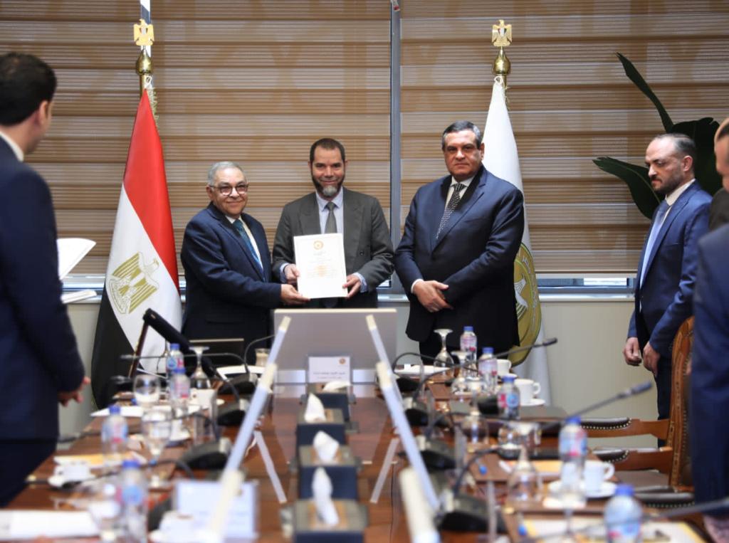 وزير التنمية المحلية يتسلم من رئيس المجلس الوطنى للتدريب والتعليم شهادة الأيزو العالمية