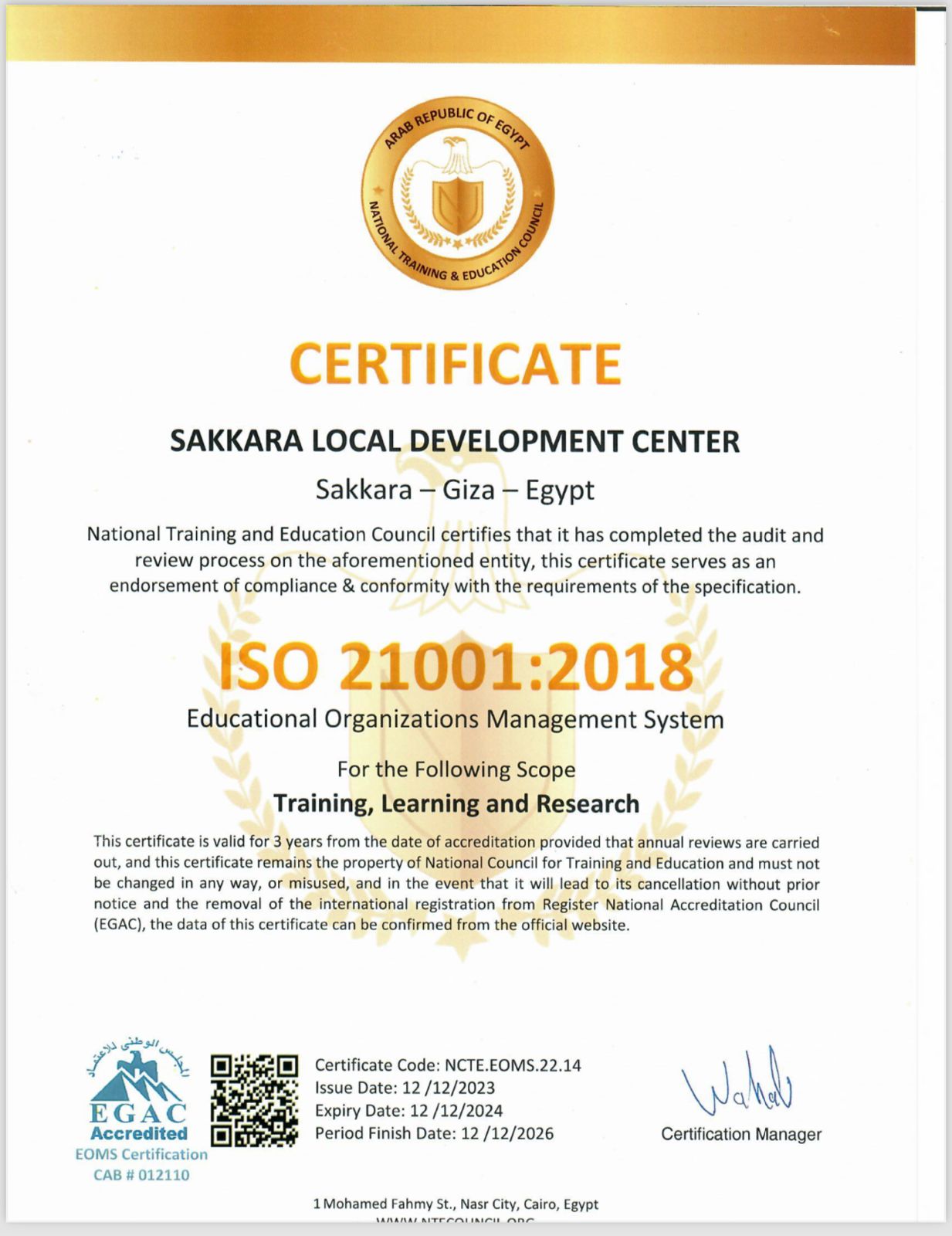 وأشار الدكتور صفوت النحاس إلى أن لجان المجلس الوطنى قامت بمراجعة المواصفات القياسية العالمية المطلوبة من بمركز سقارة، ومنها التركيز على تلبية متطلبات الدارسين وتجاوز توقعاتهم، والقيادة الحكيمة بإشراك جميع المتدربين في تنفيذ مهمة المركز ، كما تم مراجعة منهج العملية التعليمية والأنشطة التى ينفذها المركز، و علاقات المركز مع كافة الجهات ذات الصلة، والمسؤولية الاجتماعية للمركز لضمان النجاح على المدى الطويل، وقدرة المركز على تقديم خدمات وأنشطة لصالح المجتمع المحيط به، ومدى ملائمة وتوافق أماكن الإقامة مع المواصفات القياسية وزيادة رضا الدارسين وترسيخ مبادئ الشفافية في تقديم خدمات التدريب وزيادة مصداقية مركز سقارة والتركيز على إحتياجات ومتطلبات الدارسين من ذوي الإحتياجات الخاصة ، وتحقيق تكافؤ الفرص لجميع الدارسين ، مشيراً إلى أنه بعد المراجعات التي قامت بها اللجان المعنية بالمجلس الوطنى للتدريب والتعليم عبر زيارات دورية تم مراجعة الإجراءات والمعايير التى ينفذها مركز التنمية المحلية للتوافق مع معايير المواصفات الدولية ISO21001:2018 ، وأوصت بسريان حصوله على الشهادة الدولية للعام الثاني.