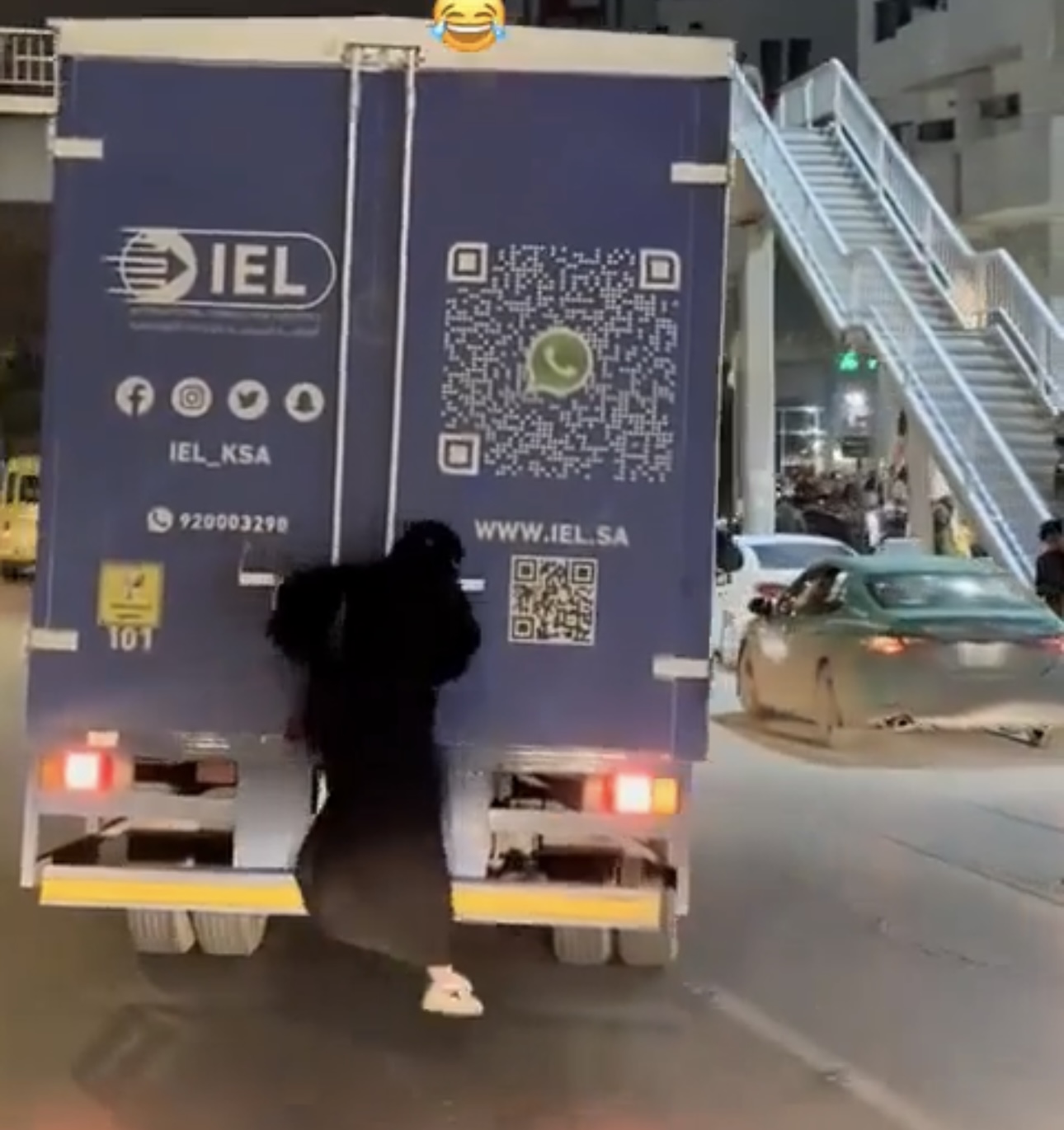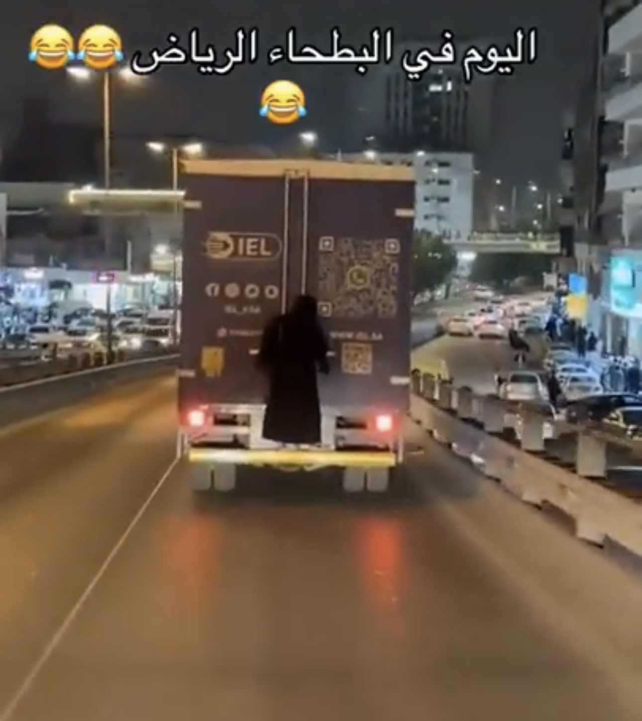 تداولت مواقع التواصل الاجتماعي في السعودية بفيديو غريب يظهر امرأة متعلقة على الأبواب الخلفية لسيارة نقل أثناء سيرها في حي البطحاء الشهير بالرياض.