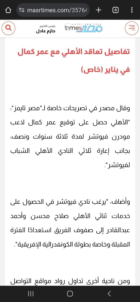 وسبق وقال مصدر في تصريحات خاصة لـ"مصر تايمز": "الأهلي حصل على توقيع عمر كمال لاعب مودرن فيوتشر لمدة ثلاثة سنوات ونصف، بجانب إعارة ثلاثي النادي الأهلي الشباب لفيوتشر".