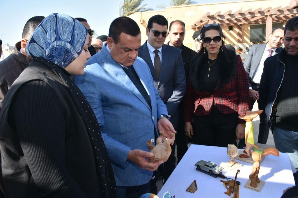 وتفقد وزير التنمية المحلية ومحافظ الشرقية أجنحة المعرض والذي يضم 17 عارض من أصحاب الحرف اليدوية من (خزف – فخار – سجاد يدوي – مشغولات يدوية – عرائس خشبية – انتيكات – كروشيه – ملابس هاند ميد- ريزن – فخار ) والذي يعكس أصالة وجودة المنتج المصري