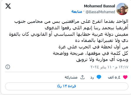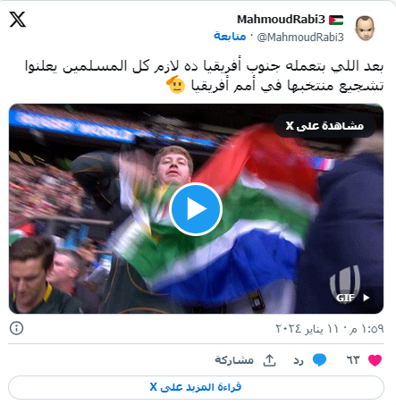 وكان اسم"جنوب أفريقيا" من أكثر العبارات تداولاً على منصة "أكس" (تويتر سابقاً)، في مصر، ولبنان، والسعودية، والأردن، وغيرها من الدول العربية.
