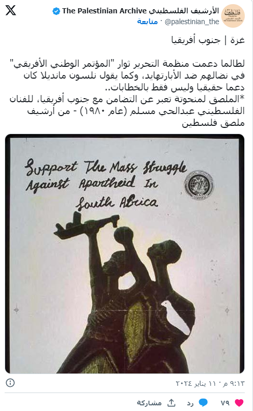 تداول المستخدمون صوراً تعبّر عن التضامن الفلسطيني الجنوب أفريقي