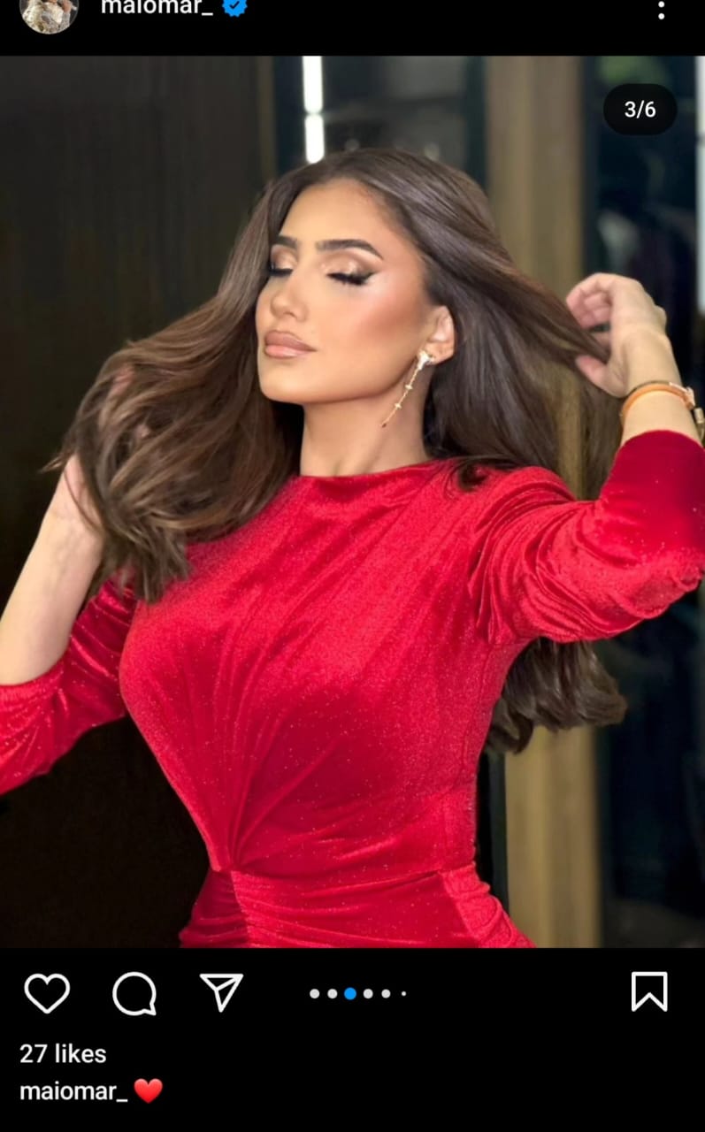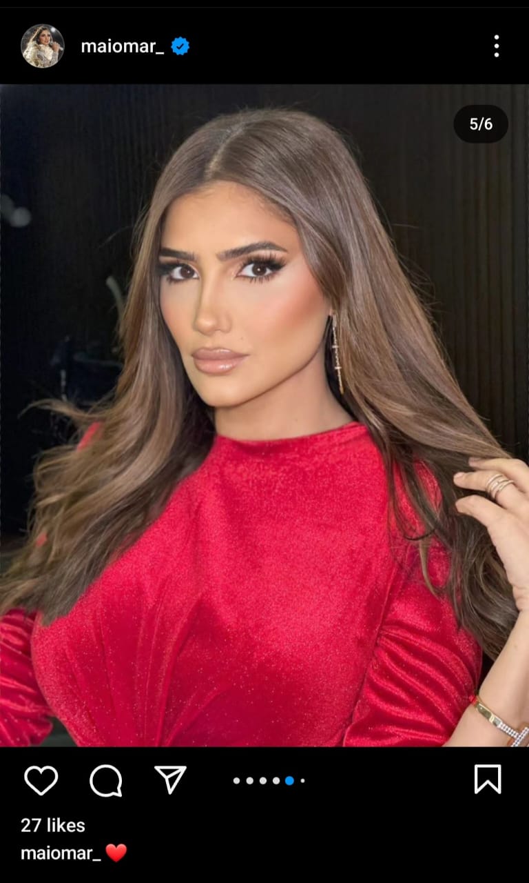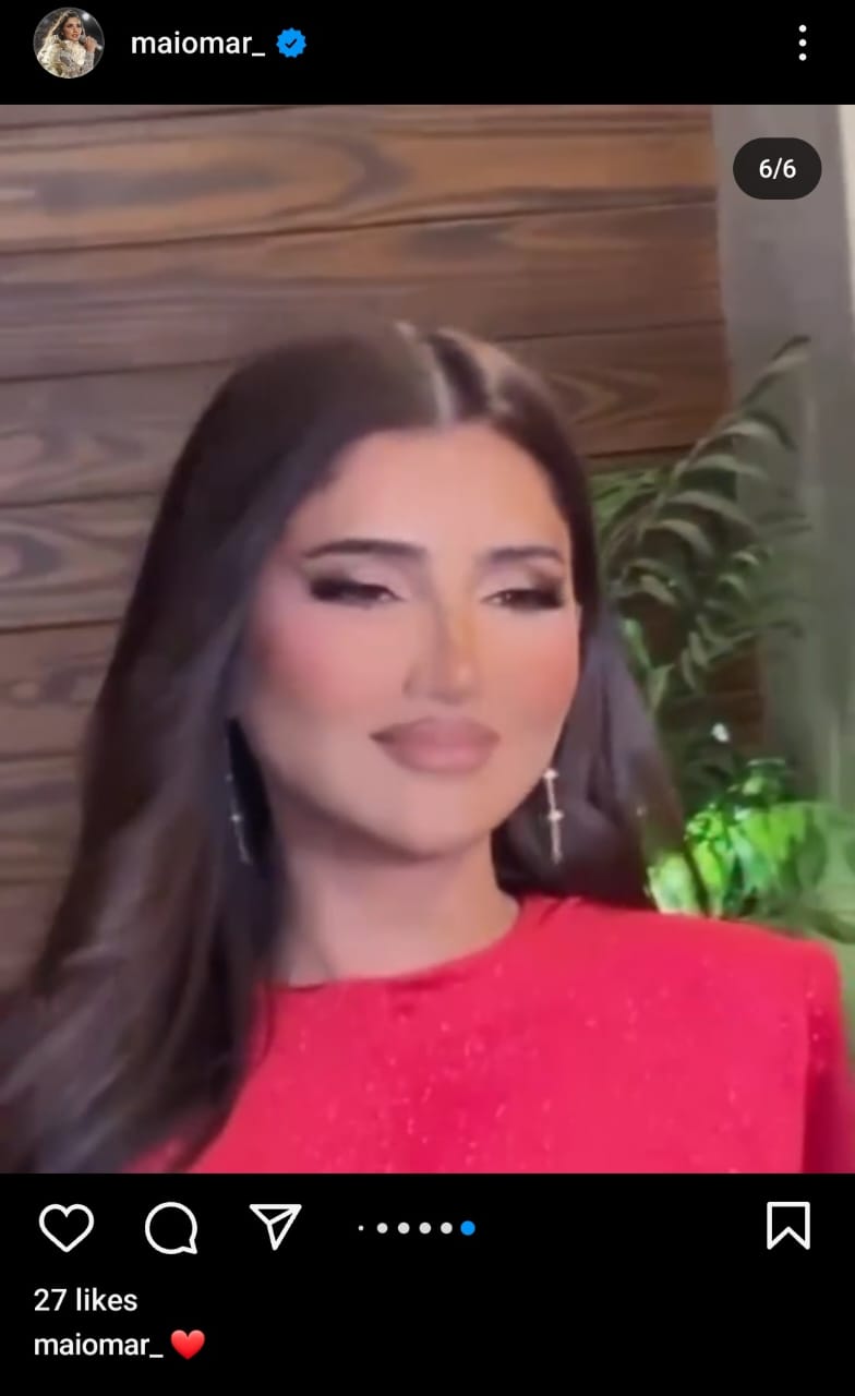 وشاركت جمهوره بعدة صورا لها، وذلك عبر حسابها الخاص بموقع تبادل الصور والفيديوهات "انستجرام" حيث ظهرت مرتدية فستان أحمر طويل.