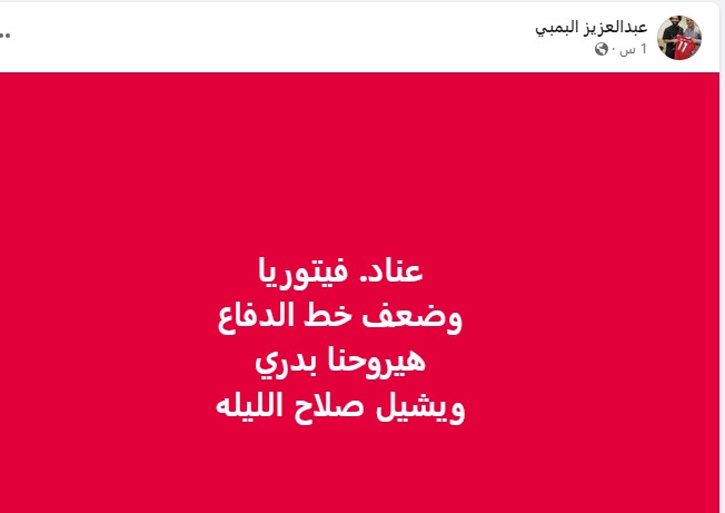 علق عبد العزيز البمبي ، خال النجم الدولى محمد صلاح على مباراة منتخب مصر وموزامبيق قائلا" عناد. فيتوريا وضعف خط الدفاع هيروحنا بدري ويشيل صلاح الليله.. اعتراف. قد يكون خطأ النني –حجازي-عبدالمنعم لايصلحون. للمنتخب اطلاقا حد موافقني الرآي".
