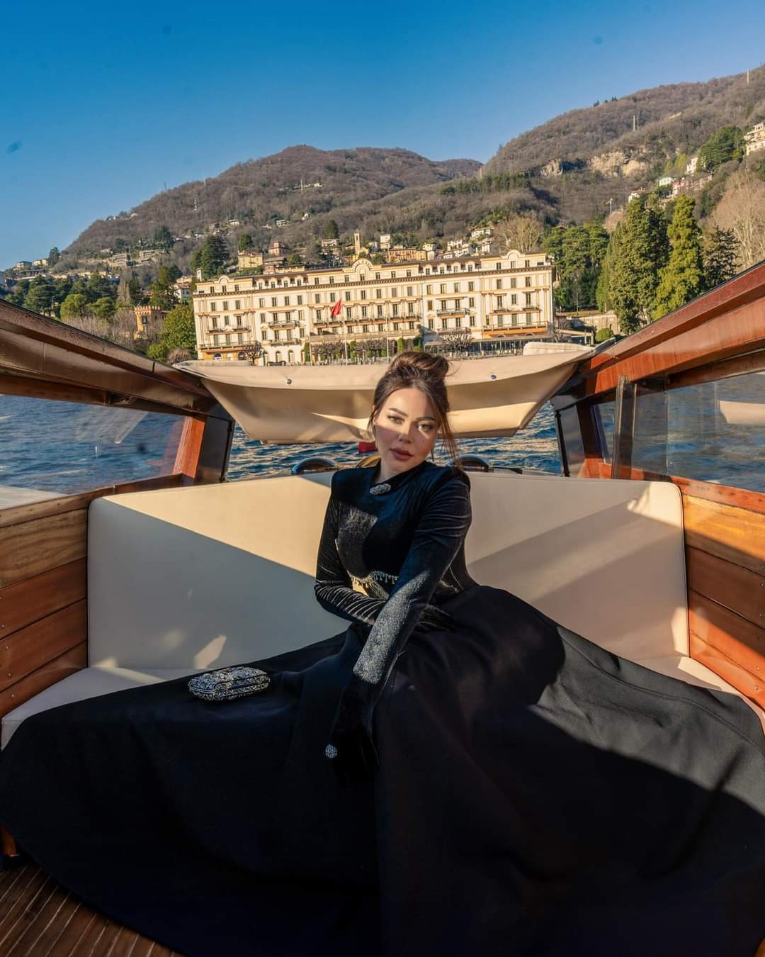 تألقت الإعلامية اسما ابراهيم في جلسة تصوير ملكية في جزيرة كومو في إيطاليا بفندق villadestelakecomo ،وظهرت أسما وهي ترتدي فستان اسود طويل داخل مركب وسط الجزيرة بمعالم بمدينة كومو الشهيرة في إيطاليا