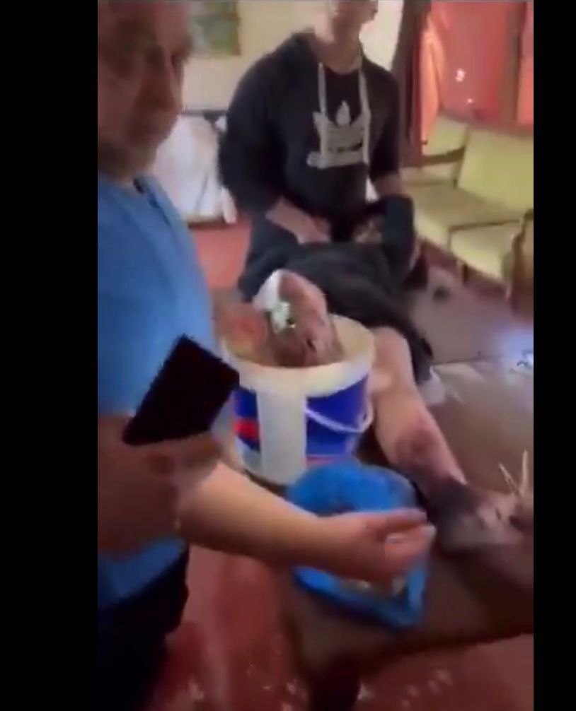 وفى مشهد صعب، وعلى طاولة المطبخ.. وبالاستعانة بأدوات الطبخ ودلو فيه القليل من الماء وكيس بلاستيكي، أطلق الدكتور بسيسو، صرخة أب ليت العالم كله يسمع صداها!.. والدموع تملأ عينه وهول اللحظة كاد يقتله.