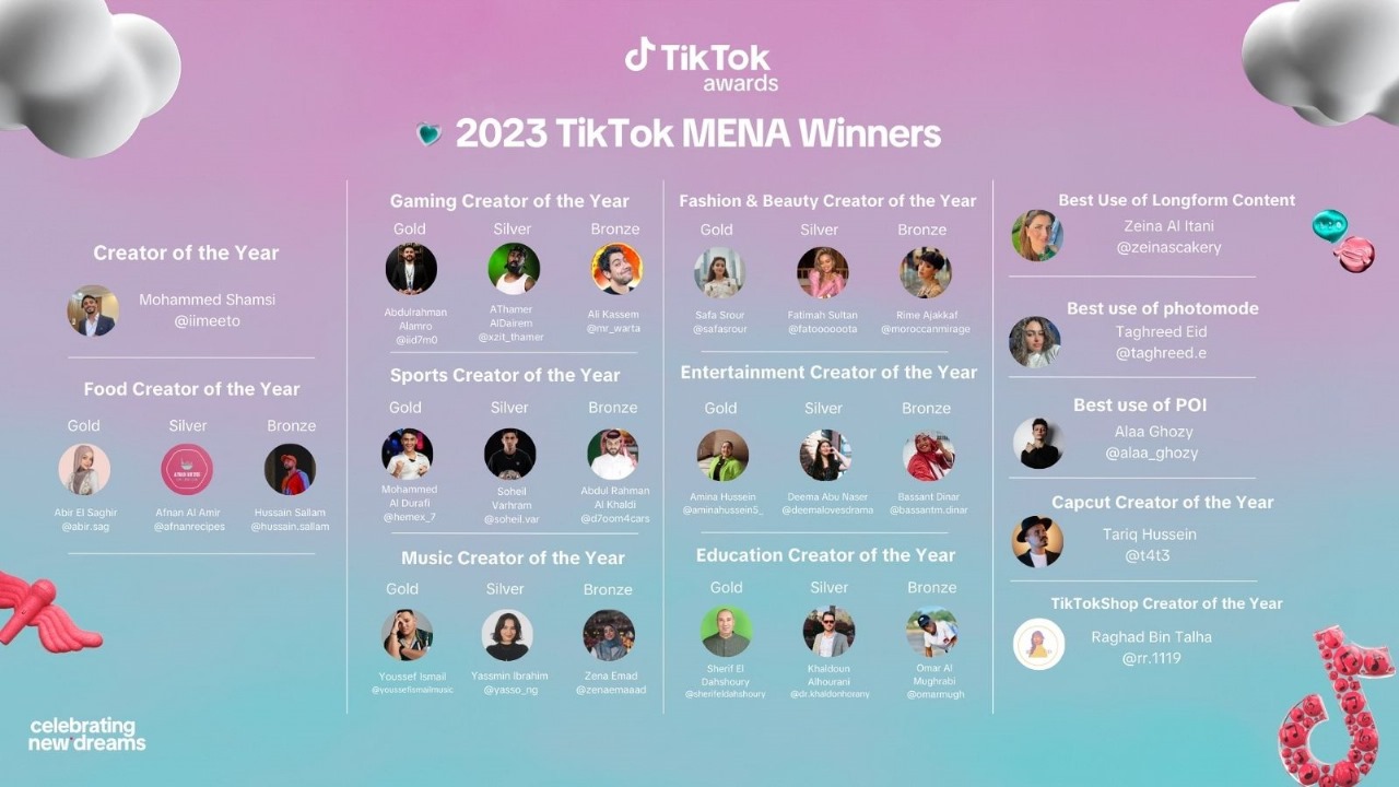‘تيك توك’ تحتفي بروّاد الإبداع في منطقة الشرق الأوسط وشمال أفريقيا خلال حفل توزيع جوائز 2023