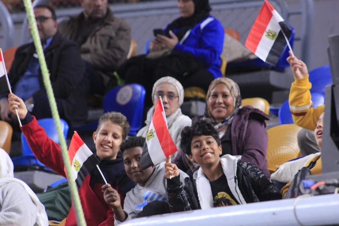 وحرصت الجماهير المصرية على التوافد بأعداد كبيرة إلى الصالة المغطاة باستاد القاهرة لحضور حفل افتتاح البطولة، بجانب مؤازرة المنتخب في مباراته اليوم أمام غينيا في الجولة الأولى من منافسات المجموعة الثانية.