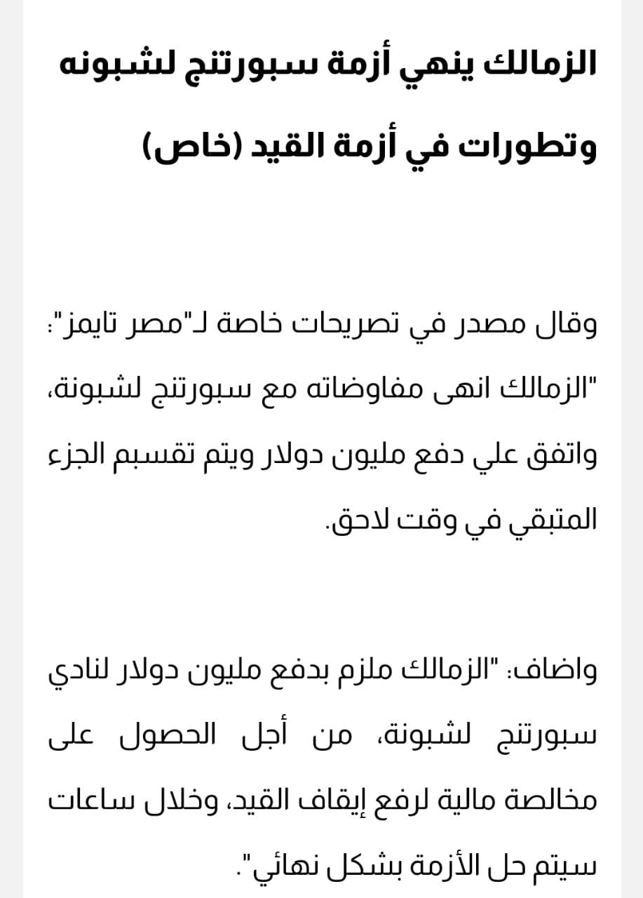 وسبق وقال مصدر في تصريحات خاصة لـ"مصر تايمز": "الزمالك انهى مفاوضاته مع سبورتنج لشبونة، واتفق علي دفع مليون دولار ويتم تقسبم الجزء المتبقي في وقت لاحق.