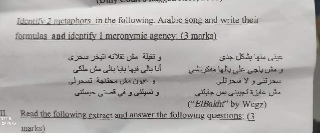 وفيما يخص استخدام أغاني القصائد في أسئلة الامتحانات، أكد "شمس" إن أساتذة الجمعات يبحثون على الجمل اللحنية القصيرة وسريعة الفهم، كما أنهم يبحثون عن الأغاني التي يسمعها الجمهور في الوقت الحالي، وهذا يدل على انحدار كبير في التعليم.