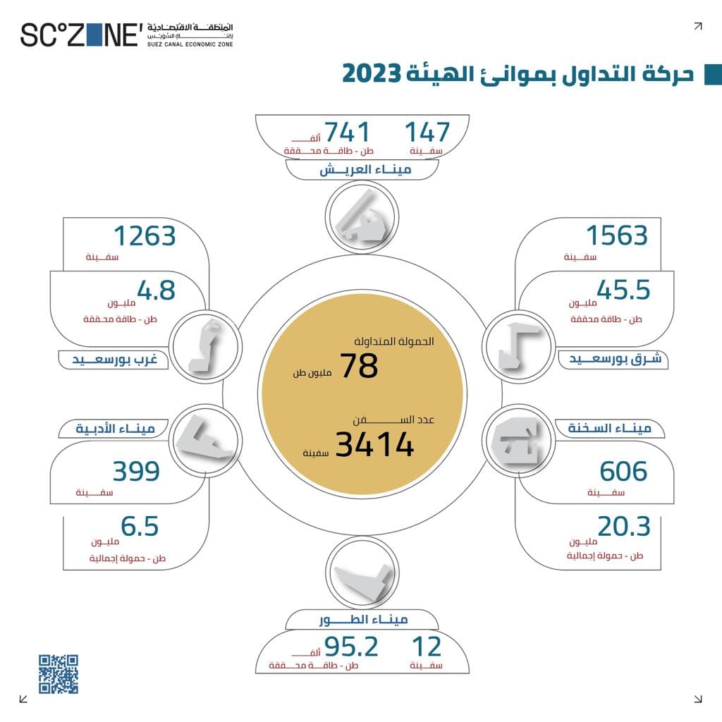 موانئ" اقتصادية قناة السويس" تستقبل 3414 سفينة بــ 78 مليون طن حمولات خلال 2023