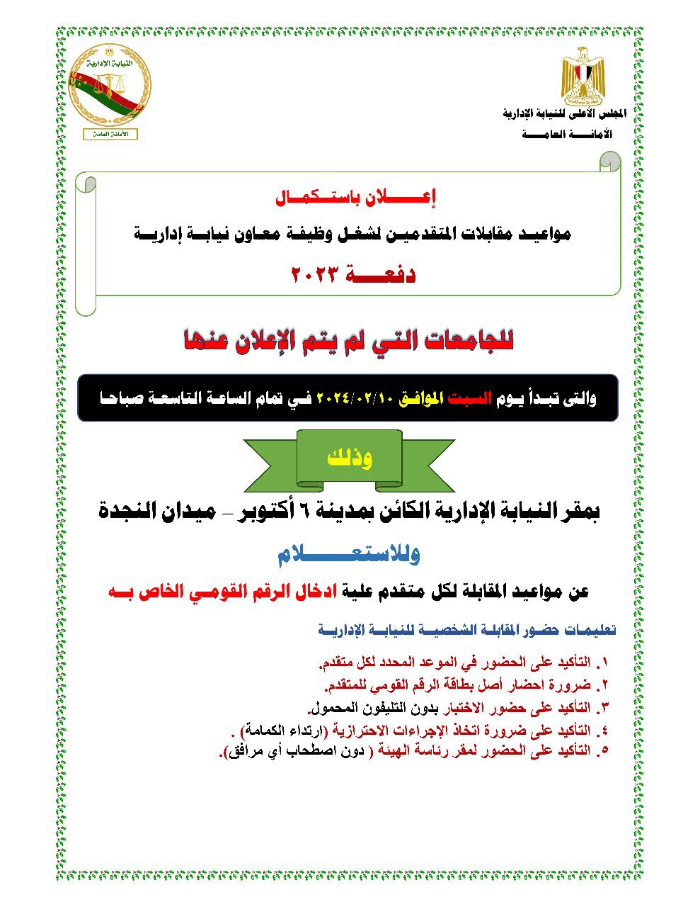 تعليمات حضور المقابلة الشخصية للنيابة الإدارية