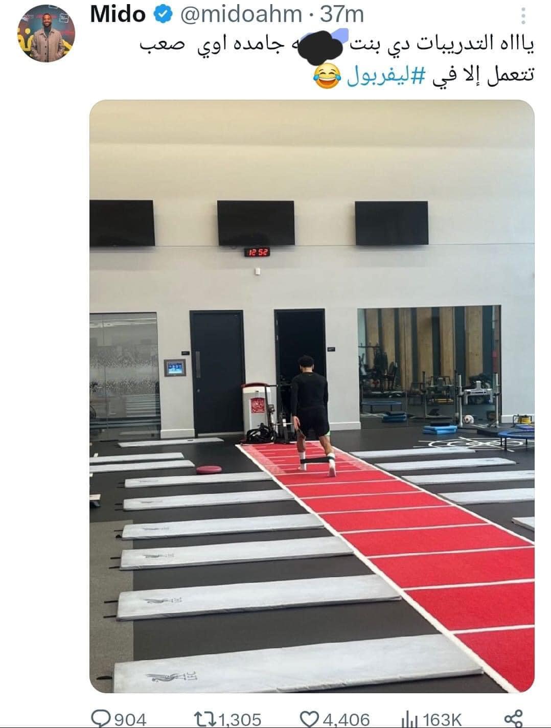 وقال ميدو تعليقاً على صورة تدريبات محمد صلاح ،" ياااه التدريبات دي بنت وسـ*خه جامده اوي صعب تتعمل إلا في ليفربول